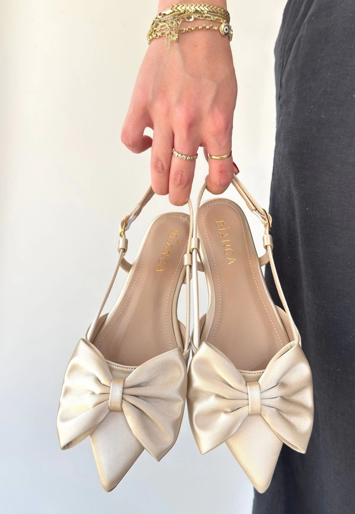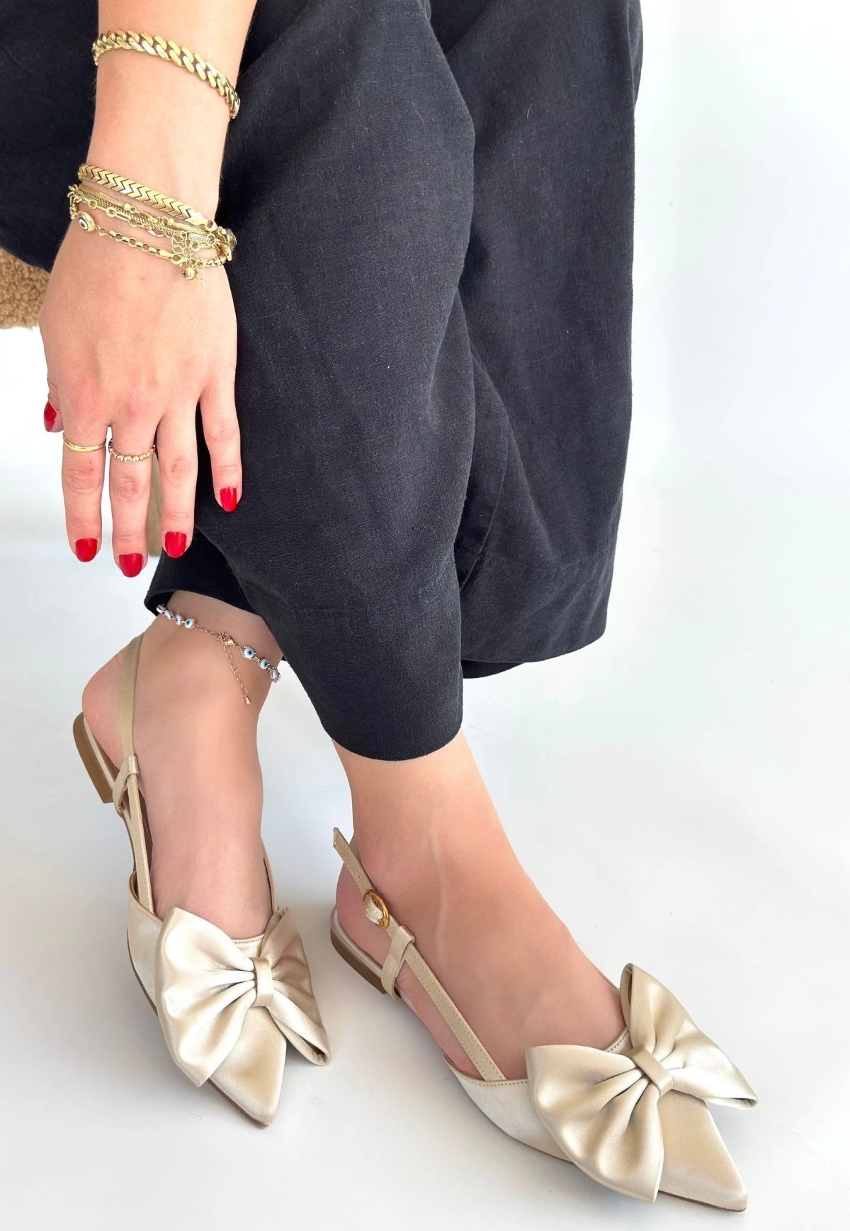 Cenya Bej Saten Babet Ayakkabı (Numara: 36)