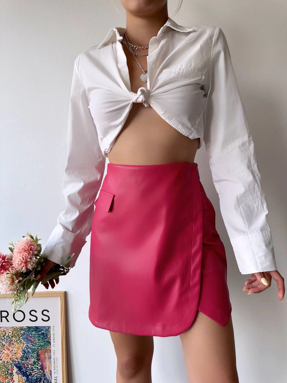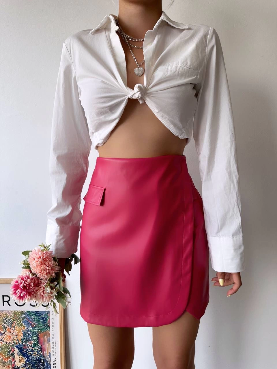 Şıklığı ve zarafeti bir arada sunan Cep detaylı oval kapaklı deri etek fuşya h240048, gardırobunuzun vazgeçilmez parçası olmaya aday.