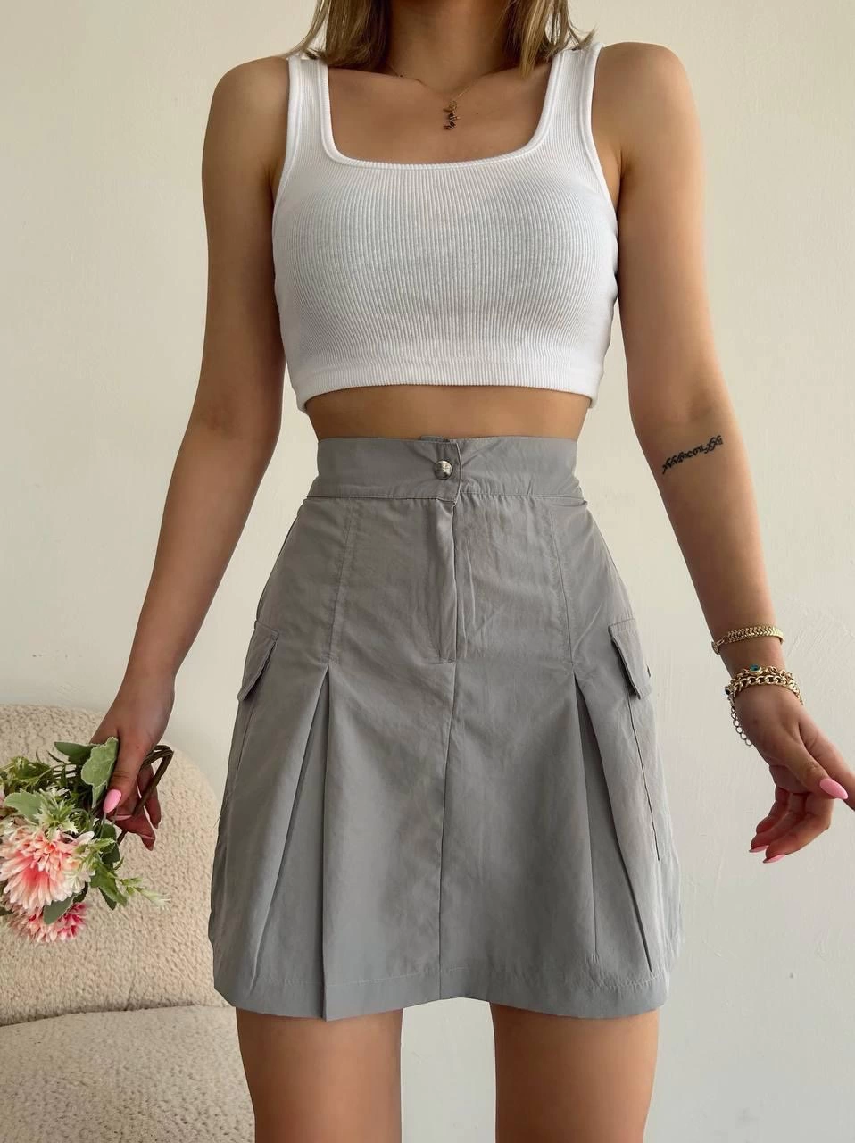 Cepli paraşüt etek s241021 Gri (Beden: S)