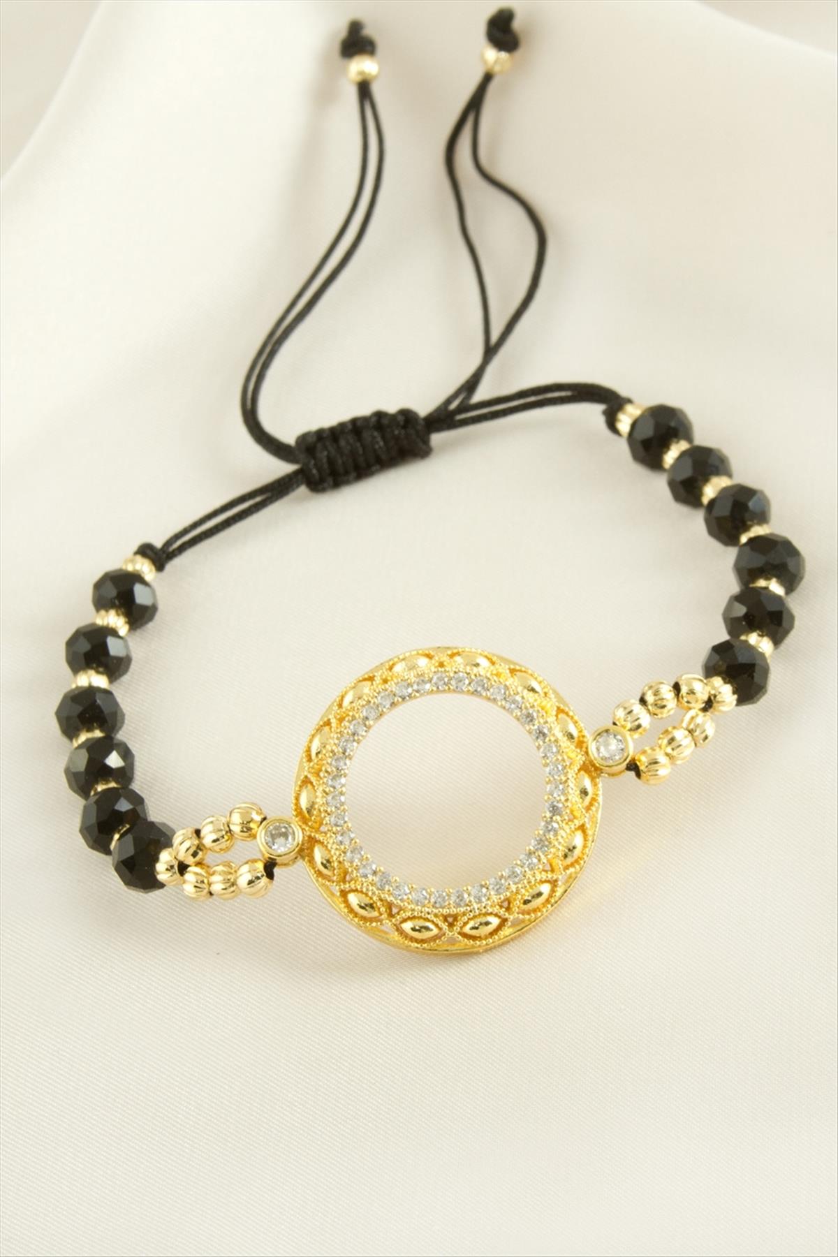 Çeyrek Altın Koyulabilir Kristal Taşlı Bileklik-Siyah