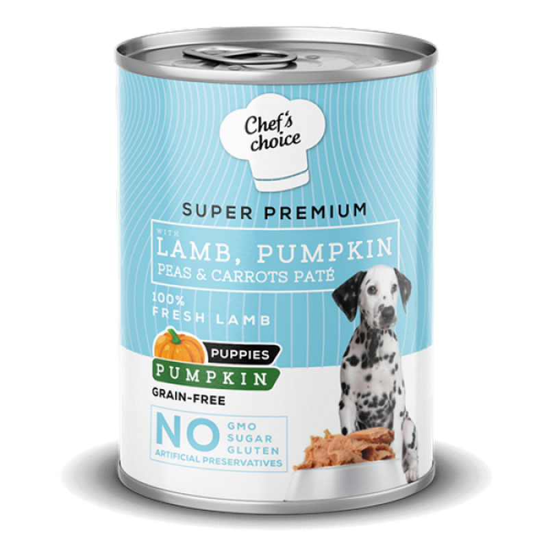 Chefs Choice Yavru Köpekler İçin, Tahılsız, Hipoalerjenik, Kuzu Etli, Balkabaklı, Bezelyeli Ve Havuçlu Ezme 400 gr