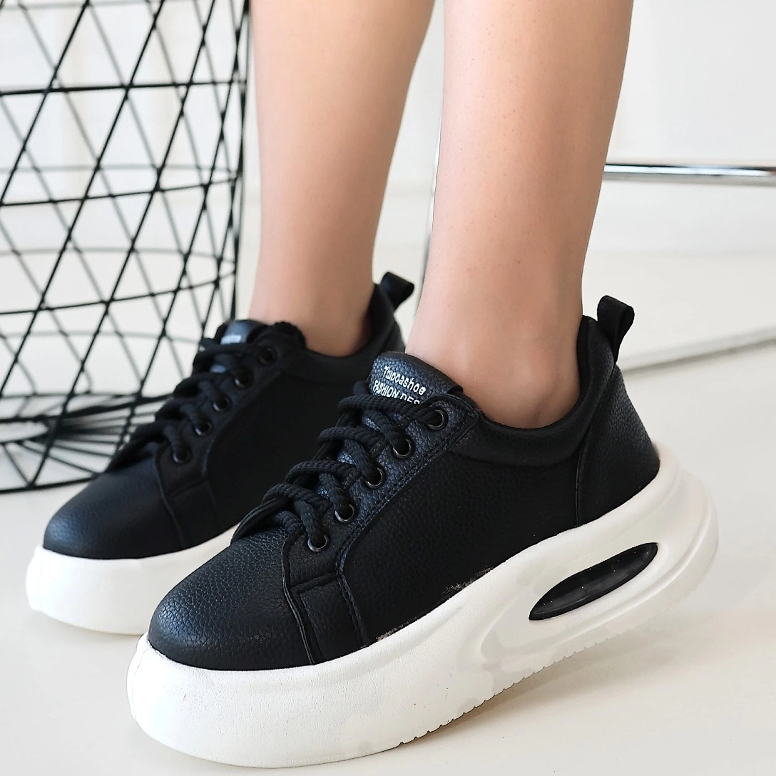 Chris Siyah Cilt Bağcıklı Spor Ayakkabı (Numara: 38)