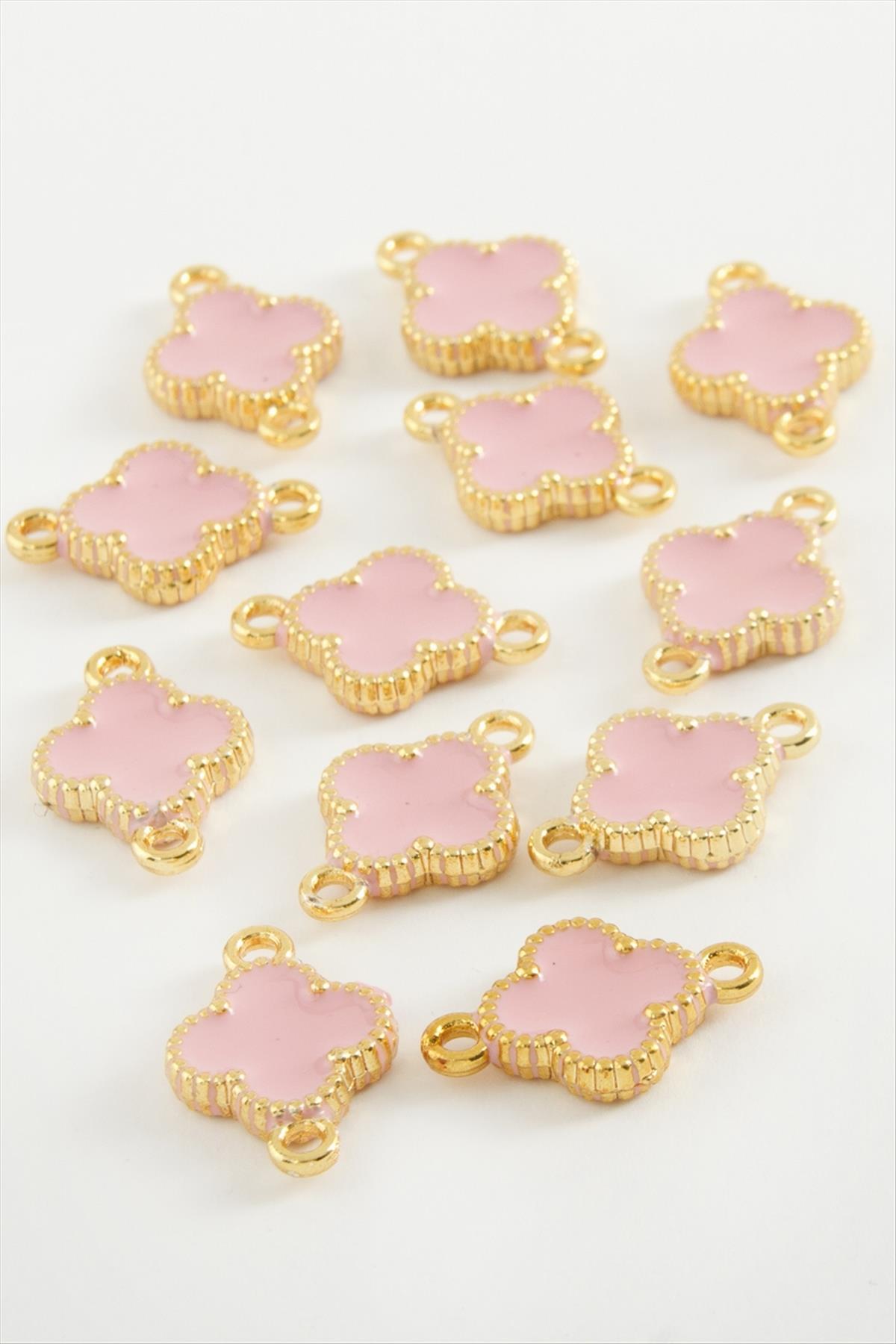 Çiçek Çift Kulplu Mineli Bileklik ve Kolye Ucu Aparatı 1 Adet-Açık Pembe