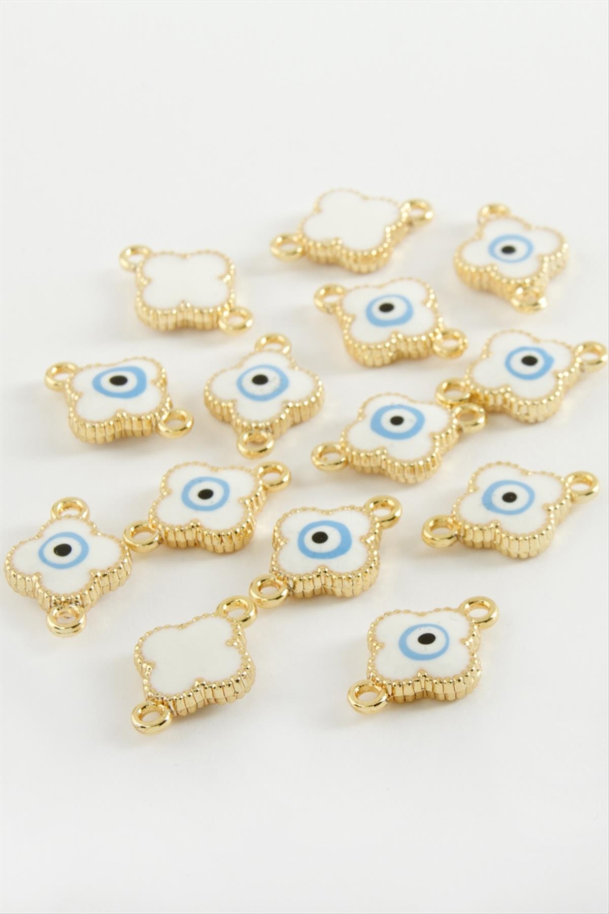 Çiçek Çift Kulplu Mineli Bileklik ve Kolye Ucu Aparatı 1 Adet-Beyaz