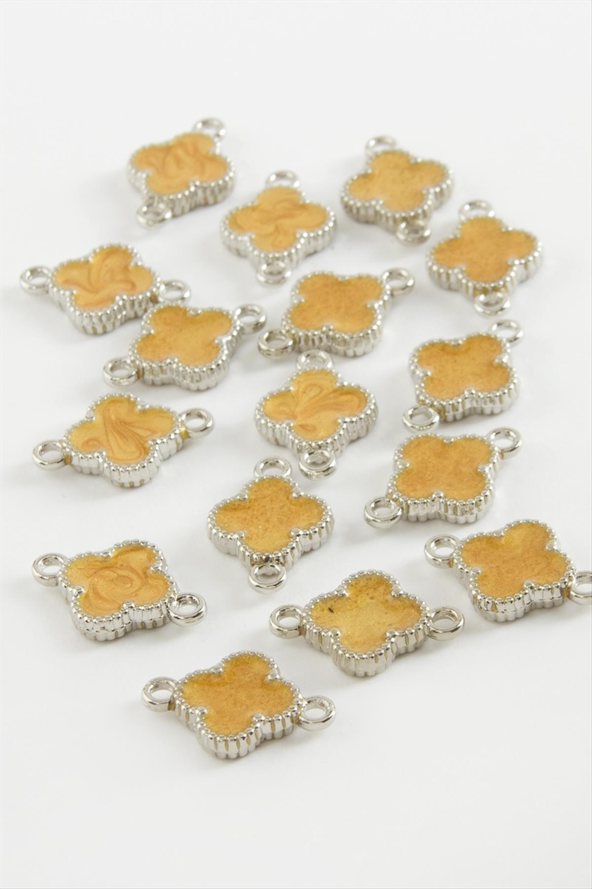 Çiçek Çift Kulplu Mineli Bileklik ve Kolye Ucu Aparatı 1 Adet-Sarı