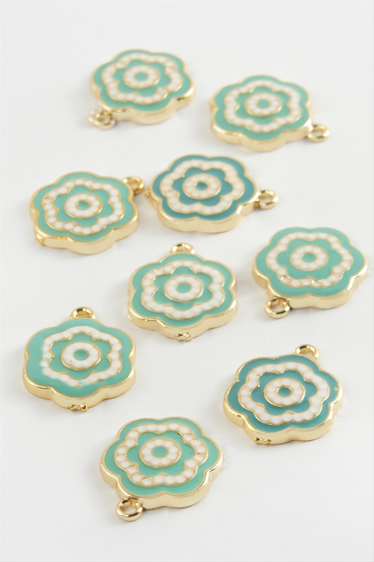 Çiçek Çift Kulplu Mineli Bileklik ve Kolye Ucu Aparatı 1 Adet-Turkuaz