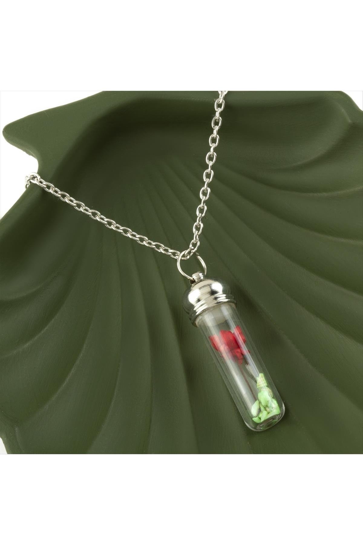Çiçek Fanus Canlı Kolye-Gümüş Rengi