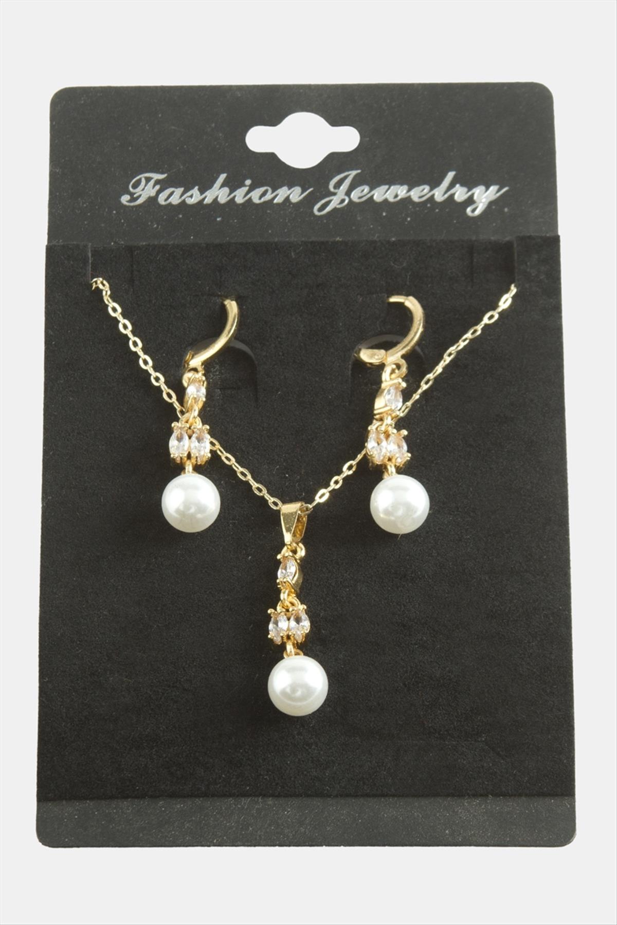 Çiçek İnci Zirkon Taşlı Set Kolye