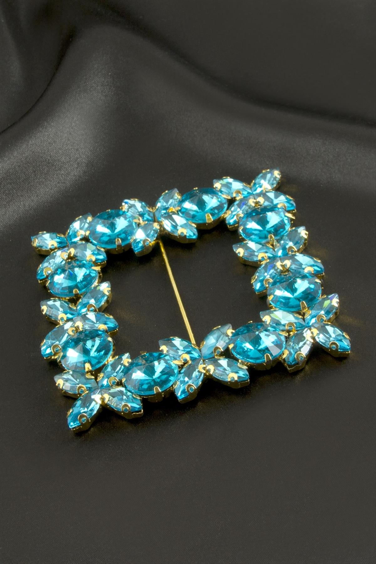 Çiçek Kare Taşlı Kemer Tokası-Mavi