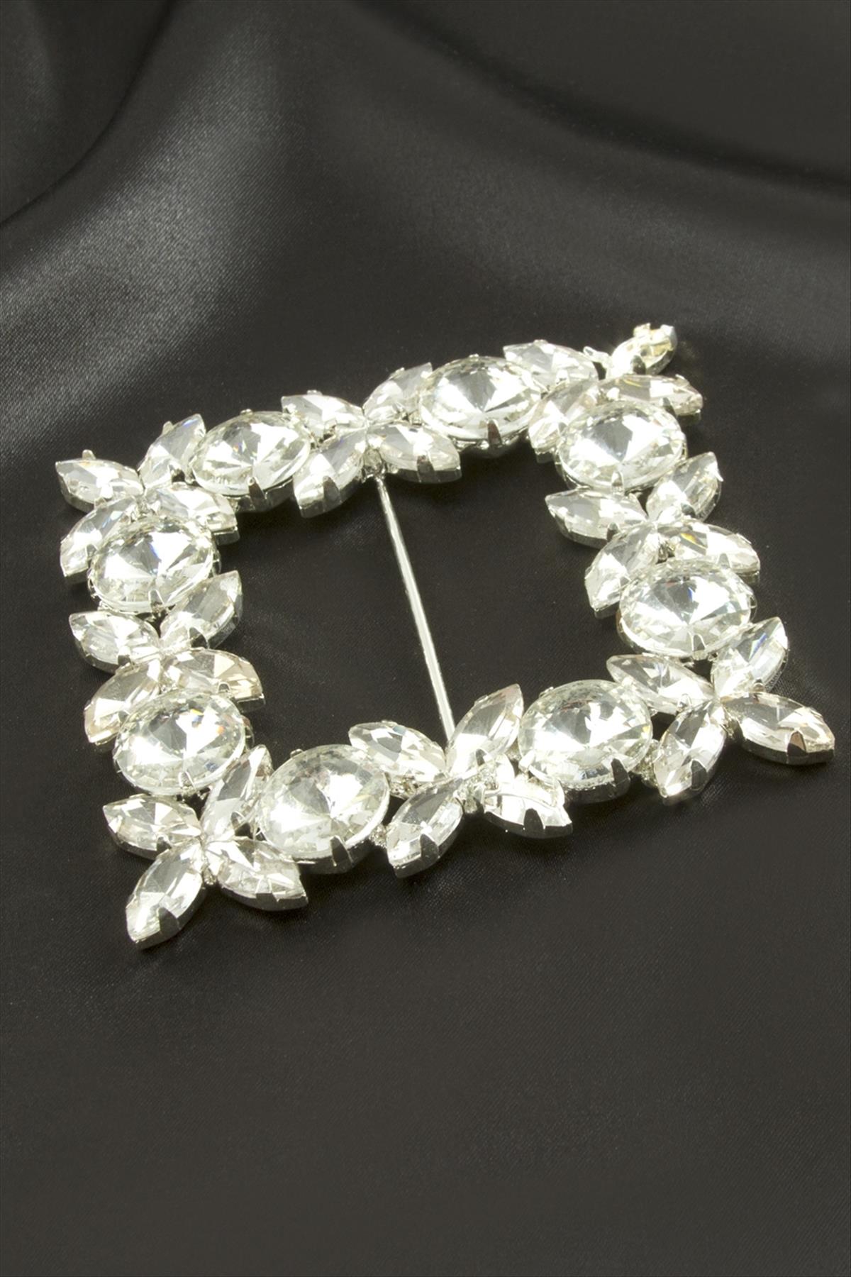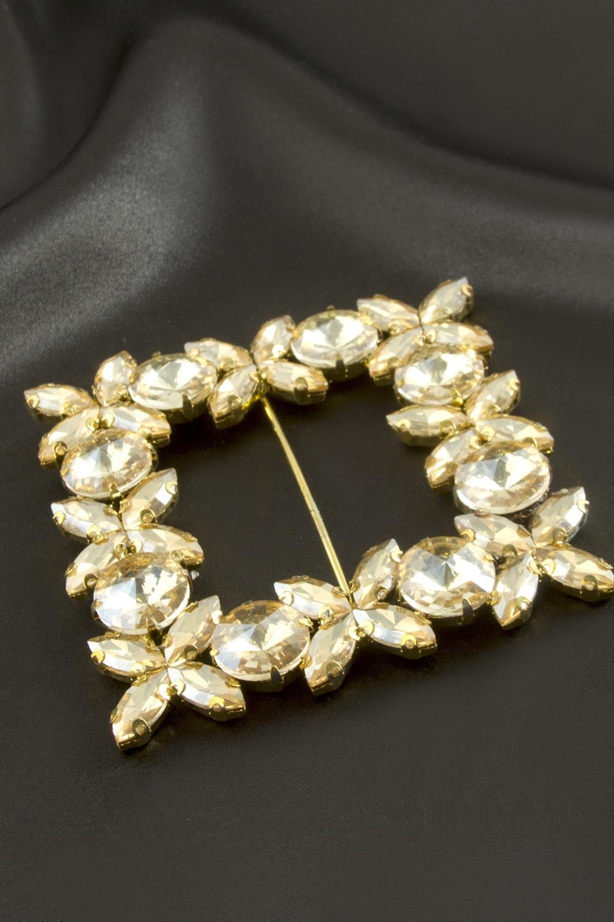 Çiçek Kare Taşlı Kemer Tokası-Sarı