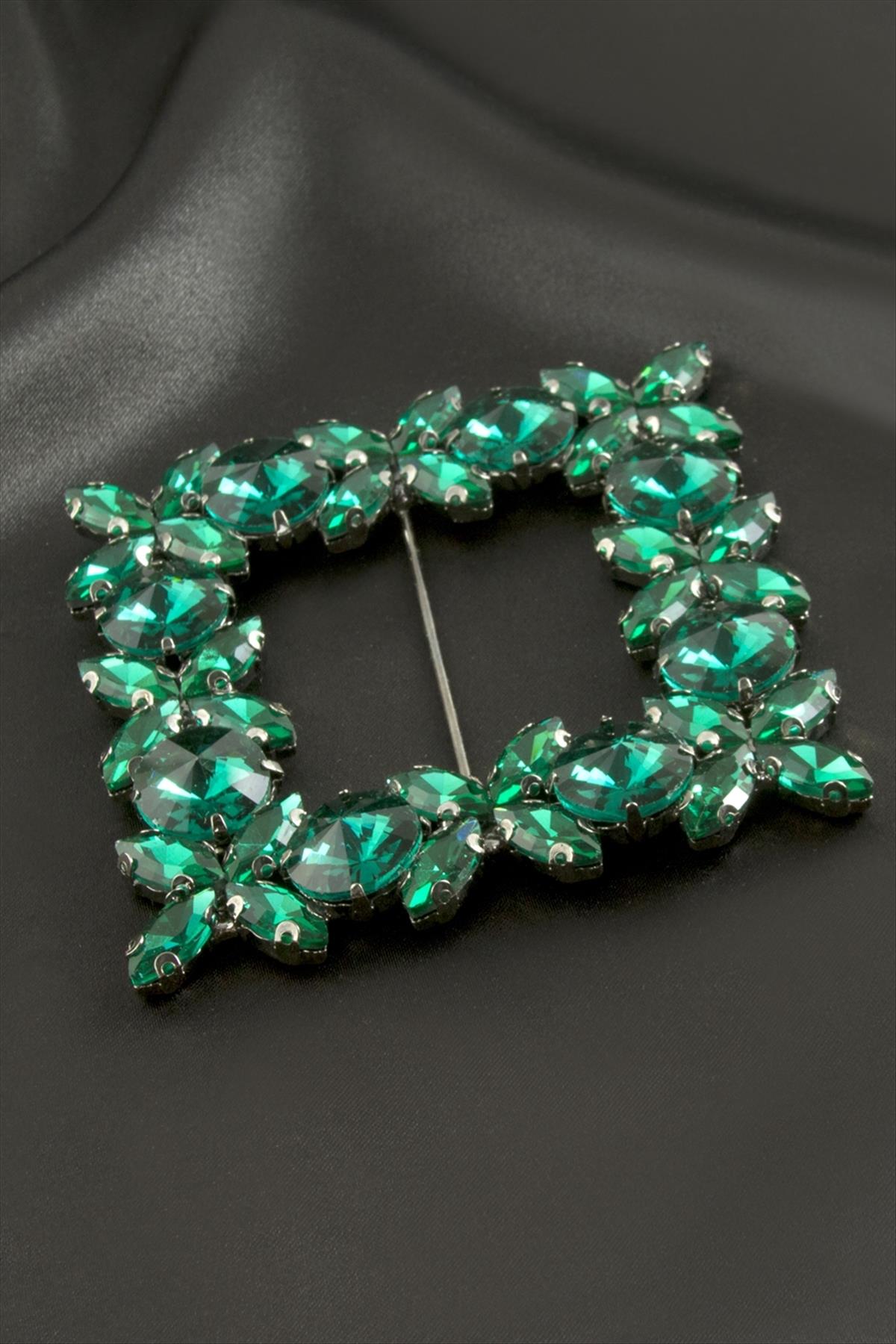 Çiçek Kare Taşlı Kemer Tokası-Yeşil