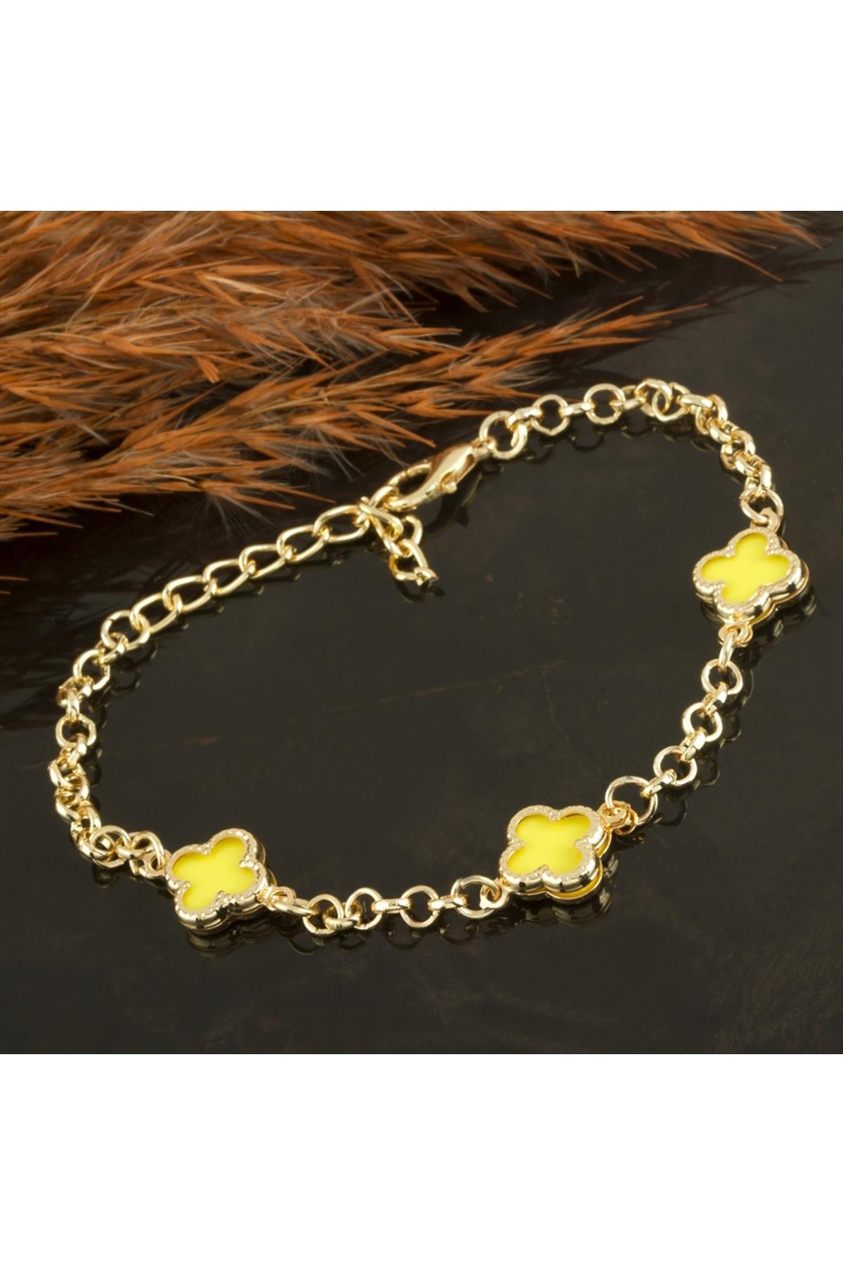 Çiçek Mineli Yeni Sezon Zincir Bileklik-Sarı