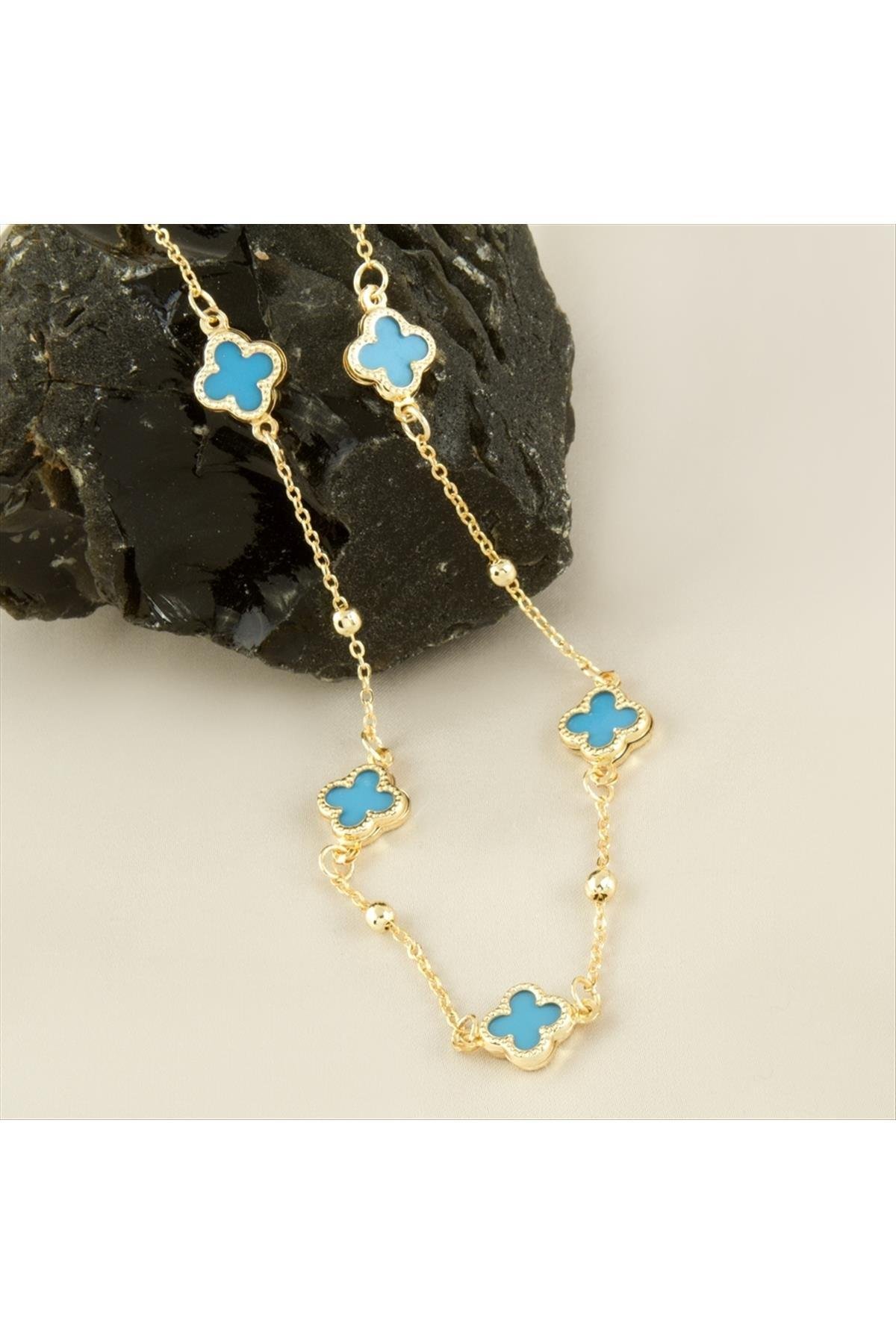 Çiçek Mineli Yeni Sezon Zincir Kolye 45 cm-Mavi