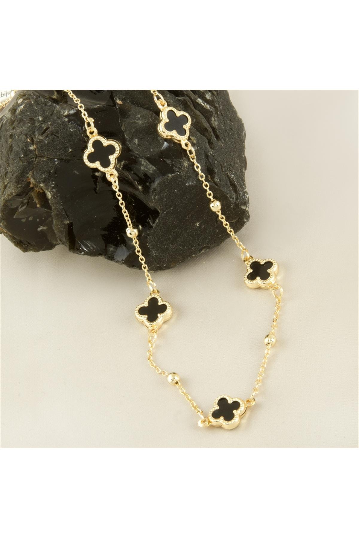 Çiçek Mineli Yeni Sezon Zincir Kolye 45 cm-Siyah