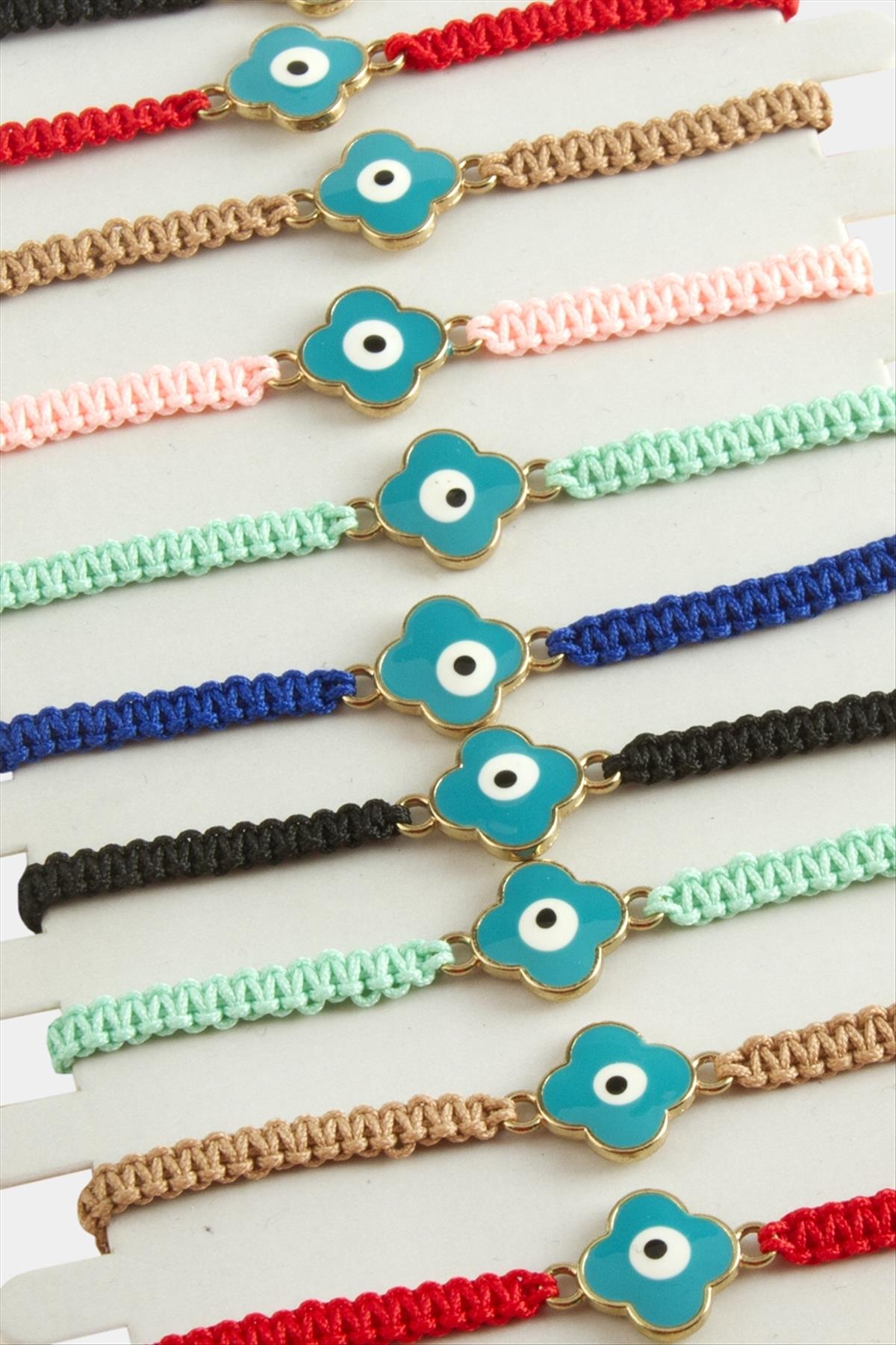 Çiçek Nazar Makrome Örgülü Bileklik-Renkli