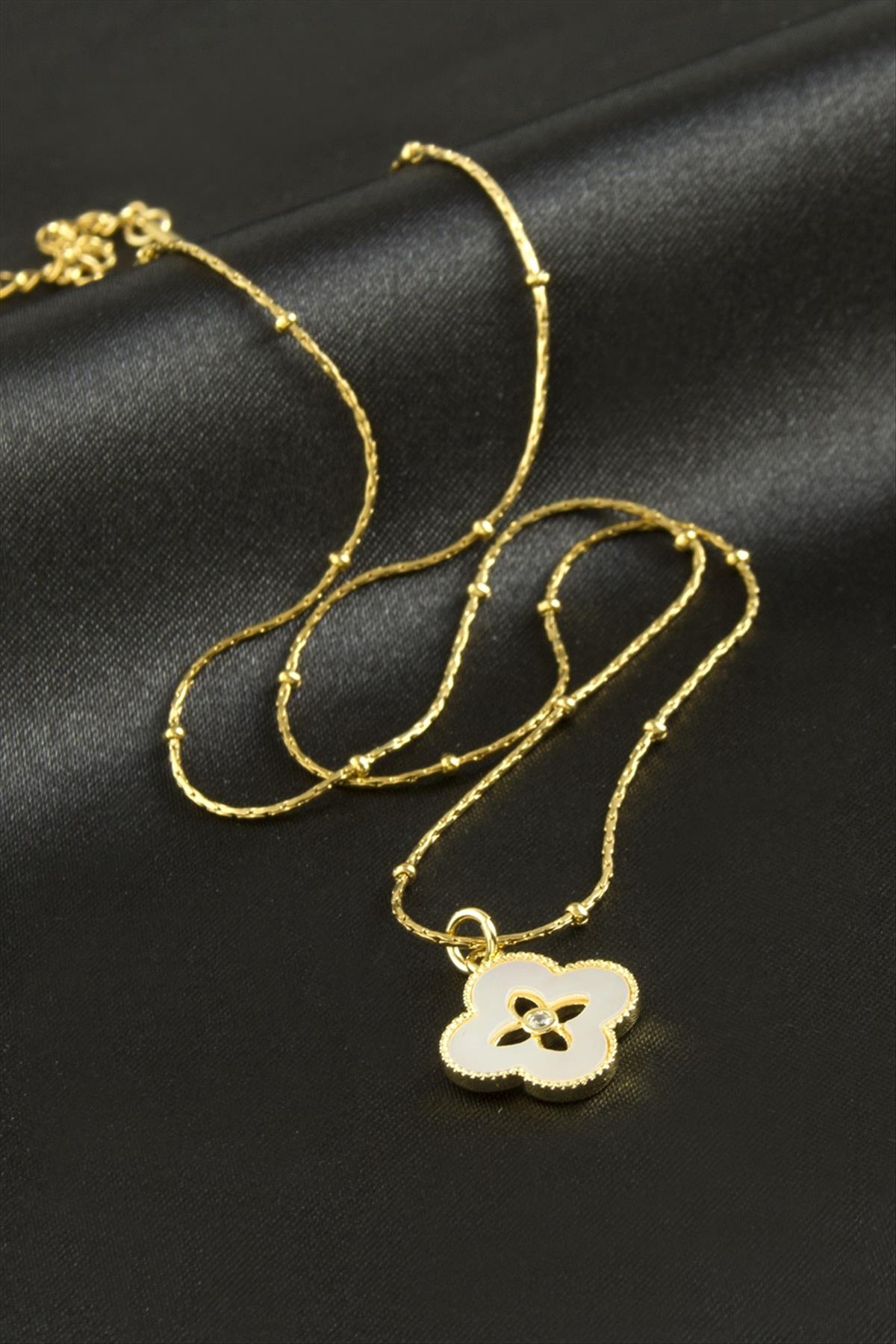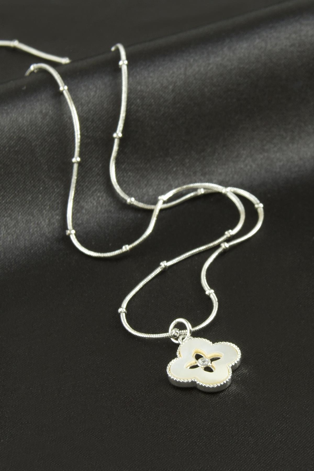 Çiçek Sedef Lüks Çelik Kolye-Gümüş Rengi
