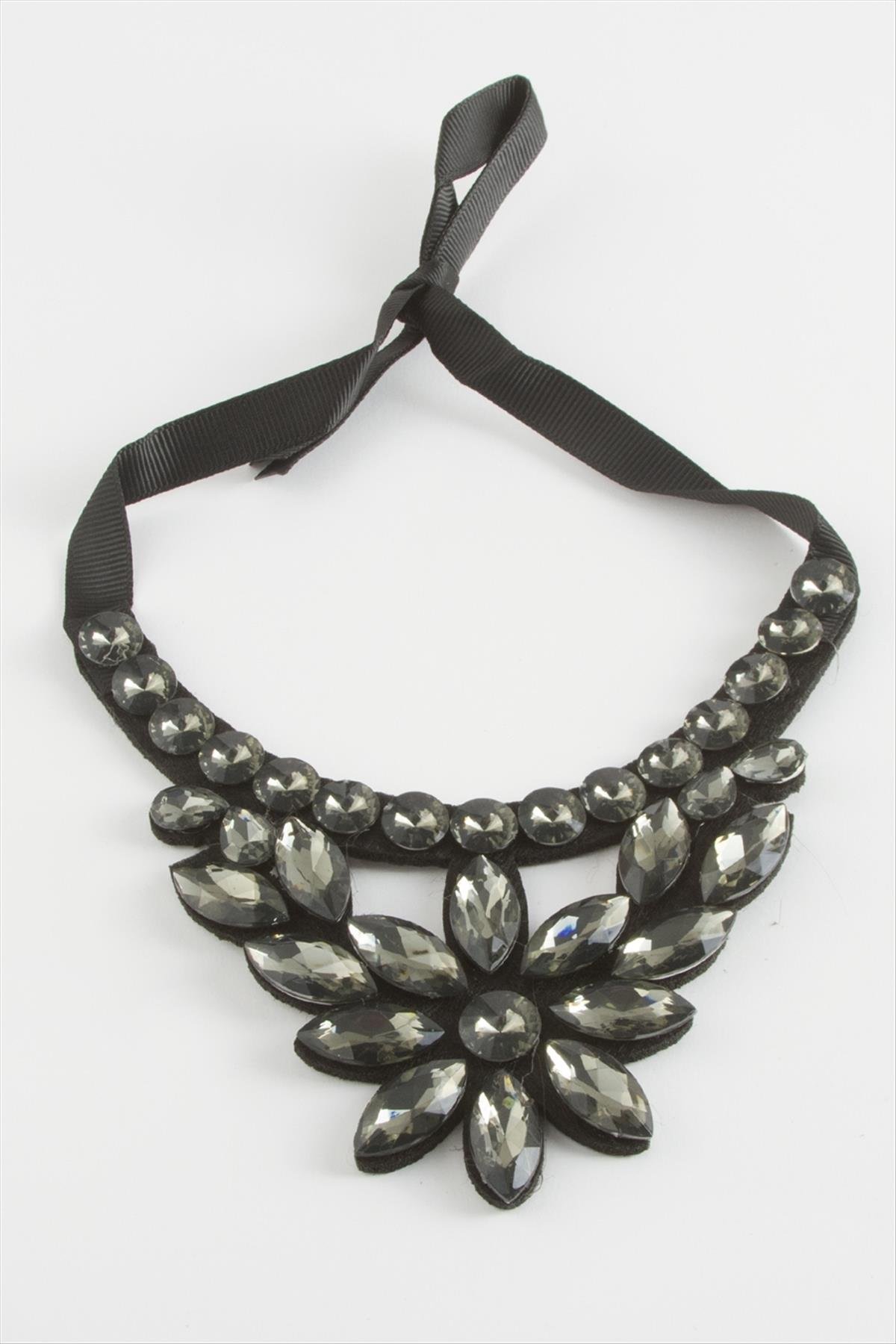 Çiçek Taşlı Yaka Kolye-Antrasit