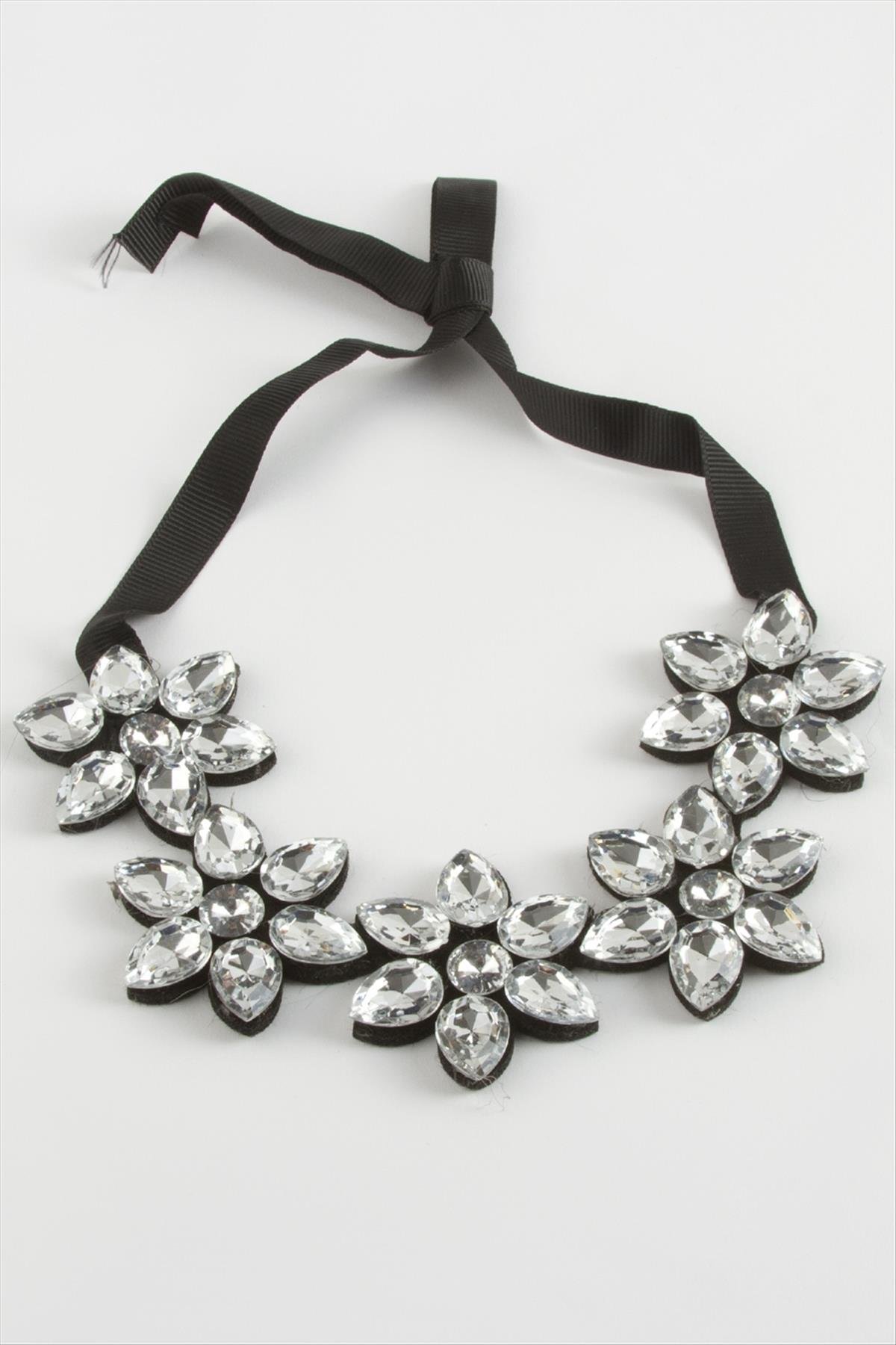 Çiçek Taşlı Yaka Kolye-Gümüş Rengi