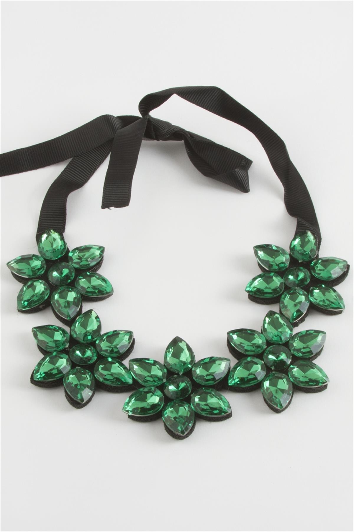 Çiçek Taşlı Yaka Kolye-Yeşil