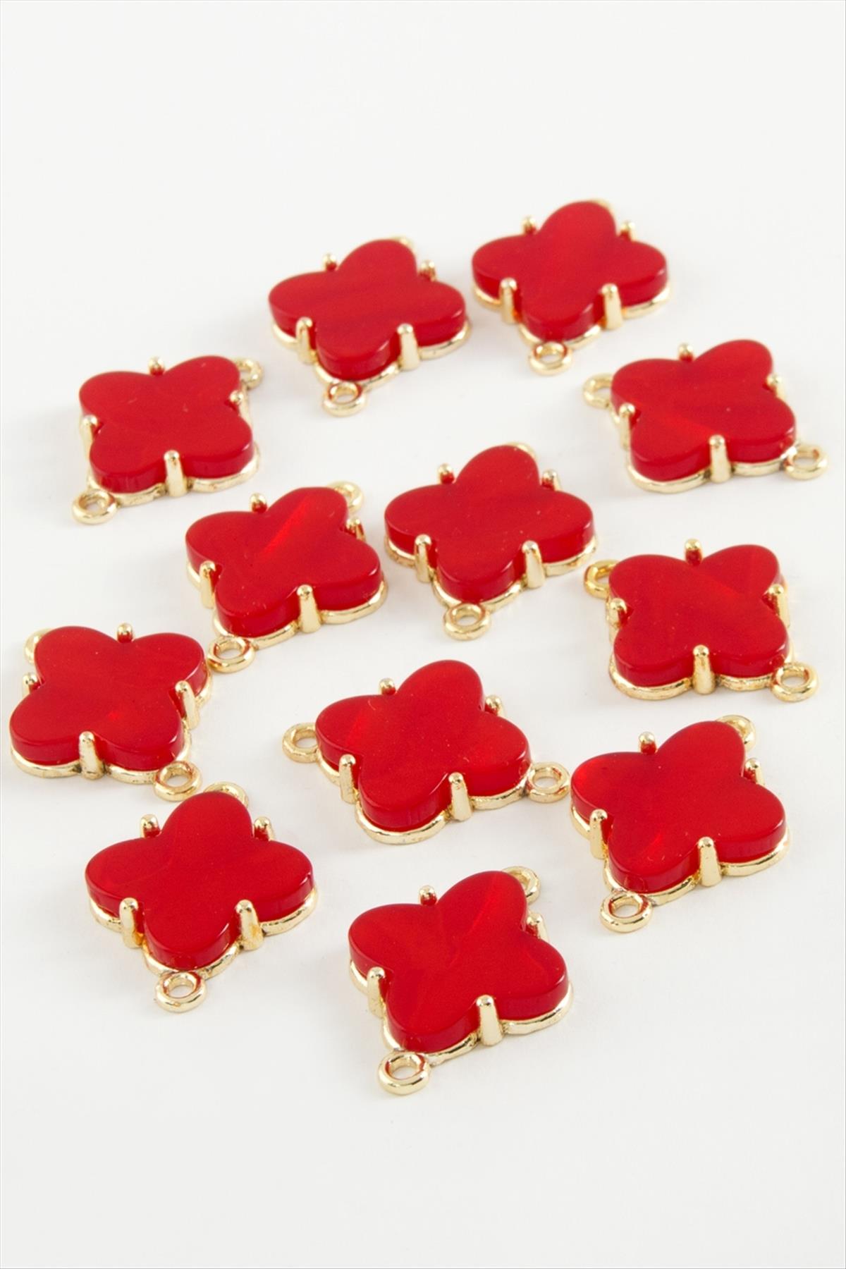 Çiçek Tek Kulp Polyester Bileklik ve Kolye Ucu Aparatı 1 Adet-Kırmızı