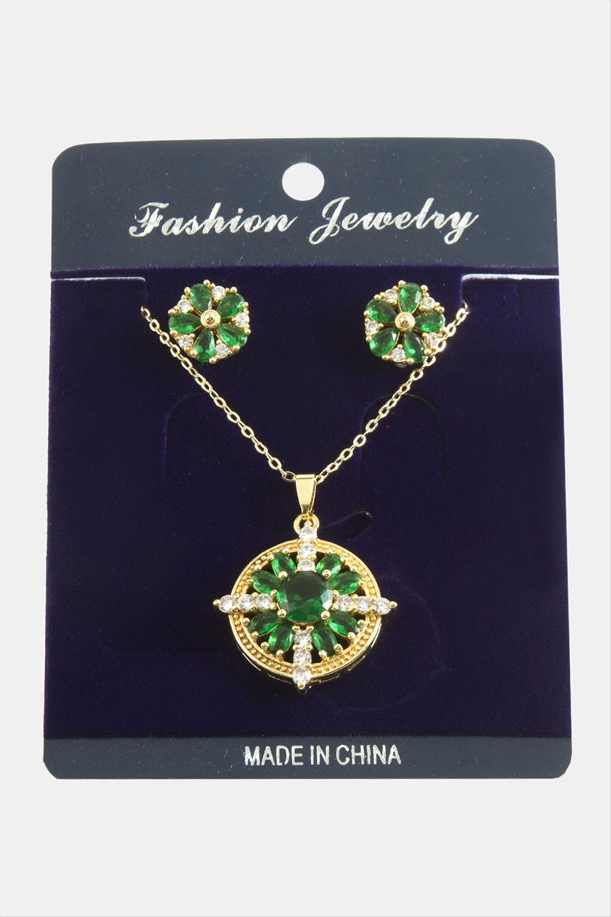 Çiçek Zirkon Taşlı Set Kolye