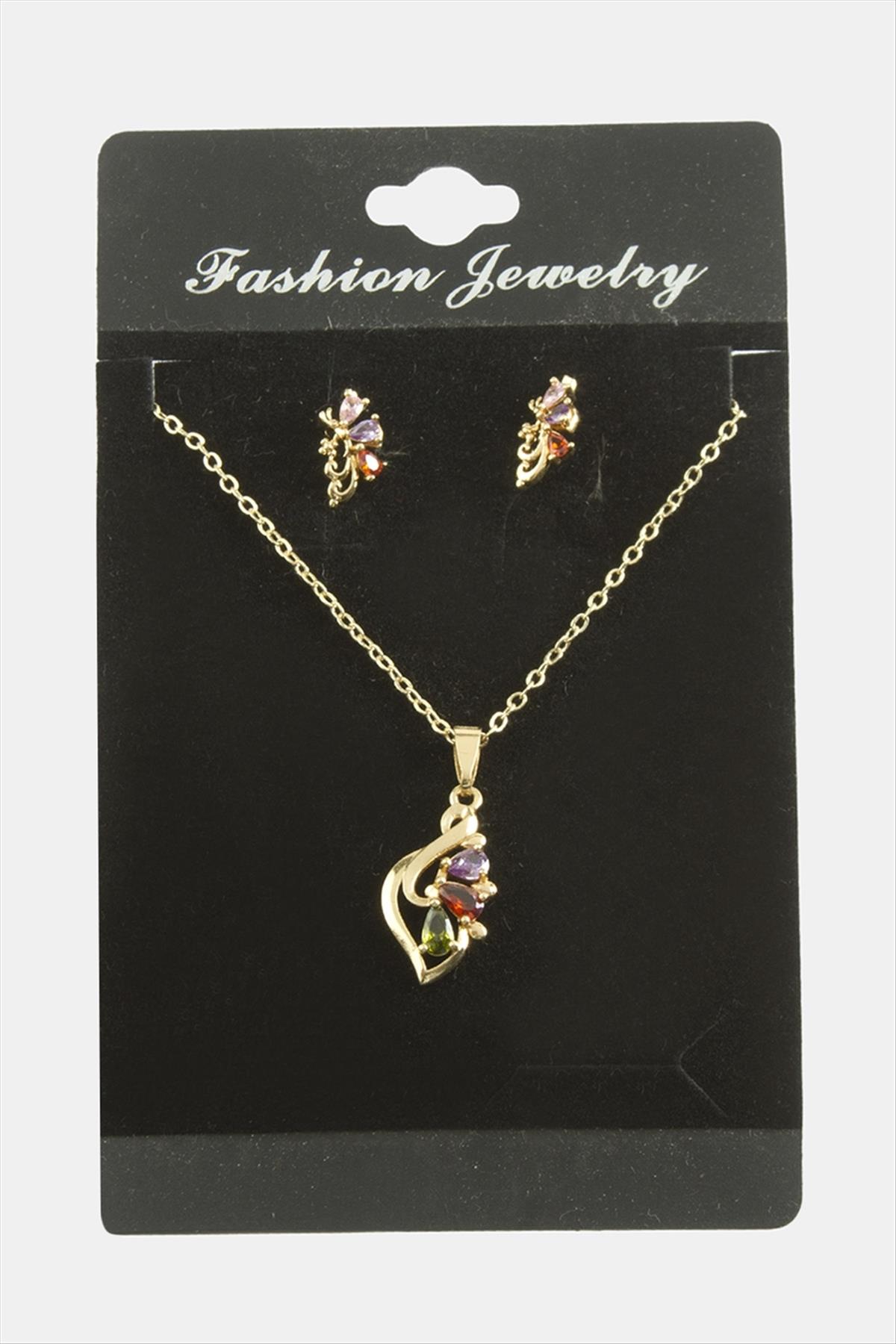 Çiçek Zirkon Taşlı Set Kolye-Renkli