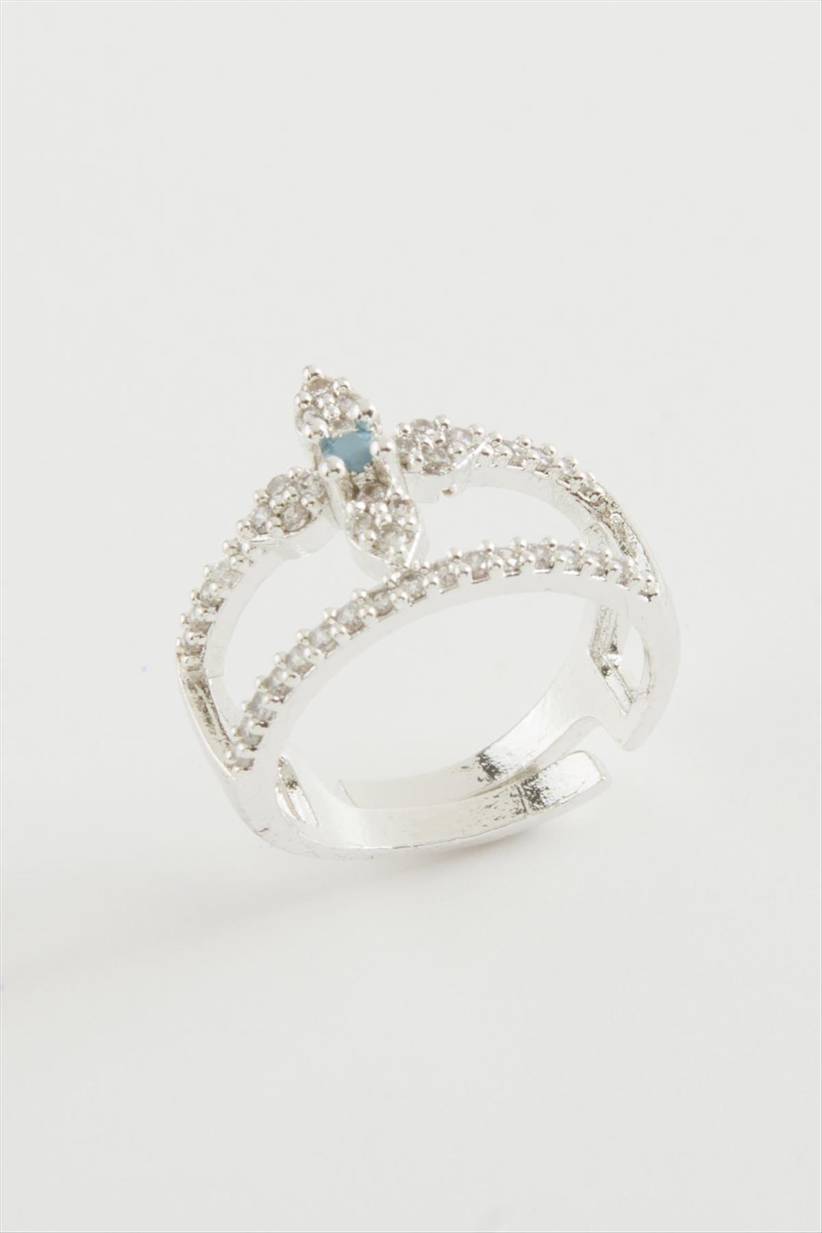 Çiçek Zirkon Taşlı Yüzük-Gümüş Rengi