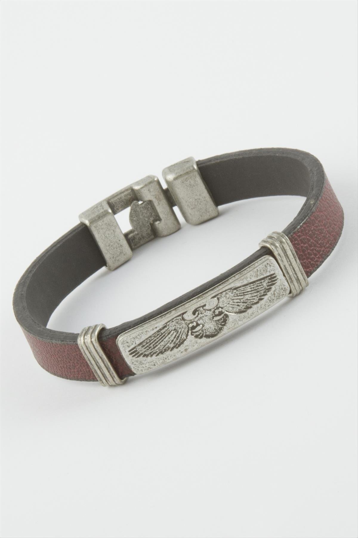 Çift Başlı Kartal Suni Deri Bileklik-Bordo