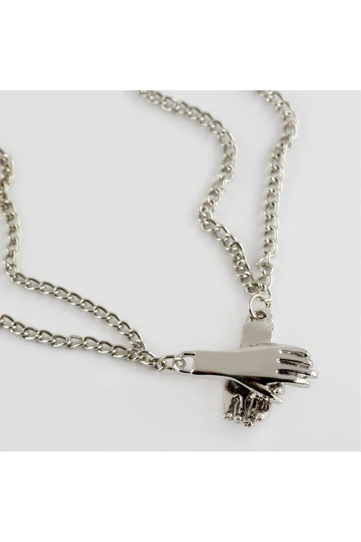 Çift El Figürlü Kolye-Gümüş Rengi