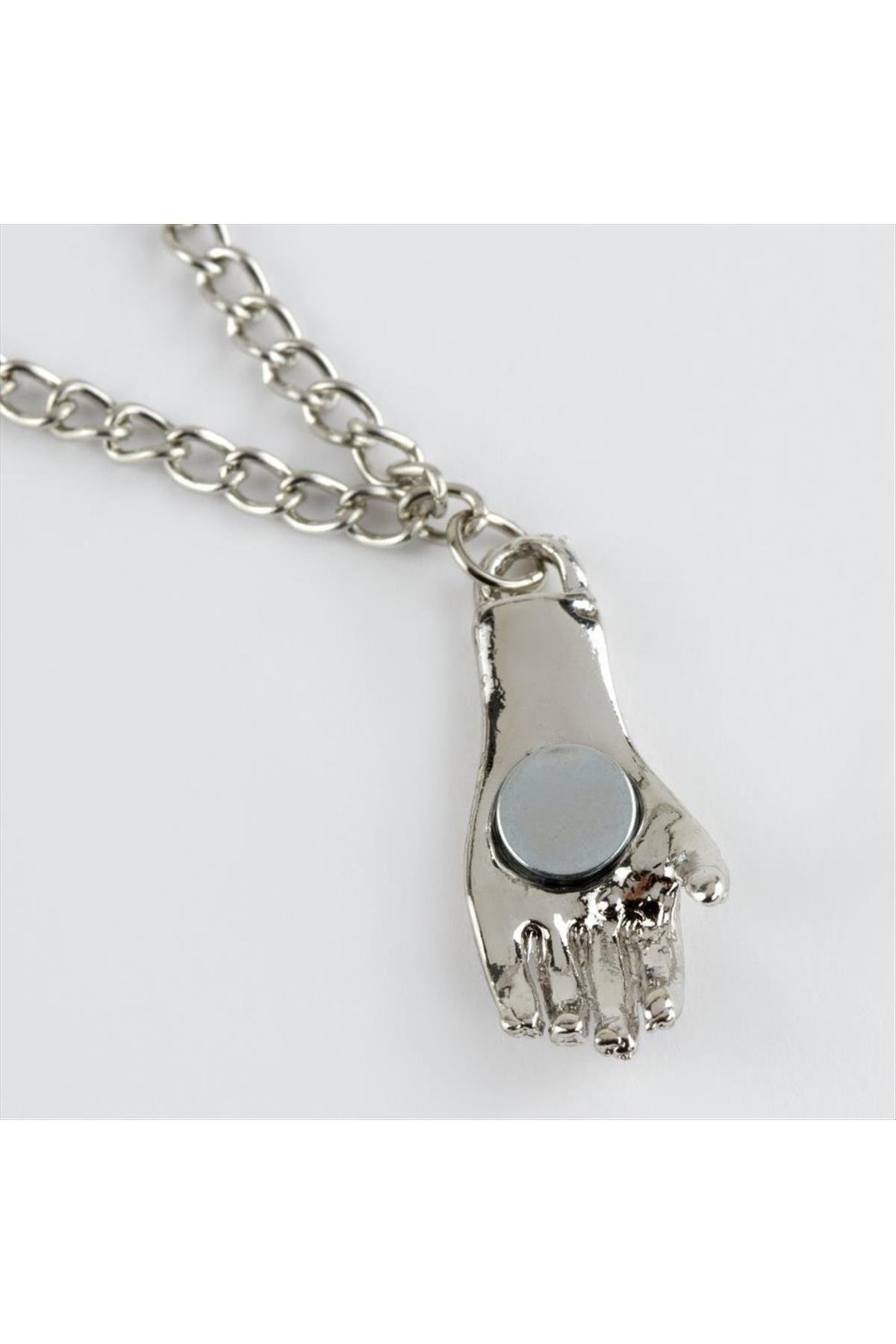 Kolye; Ürün malzemesi metaldir. Ürün zincir uzunluğu 45 cm dir. Kartıyla beraber gönderilecekdir. El figürünün ortasında mıknatıs bulunmaktadır. Çift olarak gönderilecektir.