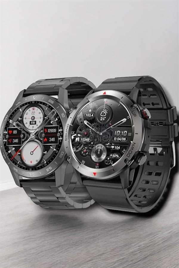 Akıllı Saatte Sağlık, Spor ve Konfor Bir Arada!Yeni nesil akıllı saat, gelişmiş özellikleriyle günlük yaşamınıza değer katar:• Bluetooth 5.0 & Sesli Asistan: Hızlı ve güvenilir bağlantı ile aramalarınızı yönetin, bildirimlerinizi kontrol edin ve sesli asistanla işlemlerinizi kolaylaştırın.• Sağlık Yönetimi: EKG, tansiyon, nabız ölçümü, vücut sıcaklığı kontrolü ve uyku takibi ile sağlığınızı her an izleyin.• Spor Modları ve Kalori Takibi: Farklı spor modları ile antrenmanlarınızı optimize edin ve harcadığınız kaloriyi takip edin.• Suya Dayanıklı ve NFC Desteği: Suya dayanıklılığıyla her ortamda kullanabilir, NFC özelliği ile temassız ödeme yapabilirsiniz.• Yüksek Çözünürlüklü Dokunmatik Ekran: Büyük ve net ekranıyla tüm detaylara hakim olun.• Kablosuz Şarj: Pratik kullanım için kablosuz şarj imkanı sunar.• Şık Çift Kordon Tasarımı: Farklı stiller için iki farklı kordon seçeneği sunar.Bu akıllı saat, iOS ve Android uyumluluğuyla tüm cihazlarınızla sorunsuz bir şekilde çalışır. Hem günlük hayatınızda hem de spor aktivitelerinizde vazgeçilmez bir teknoloji ürünü!