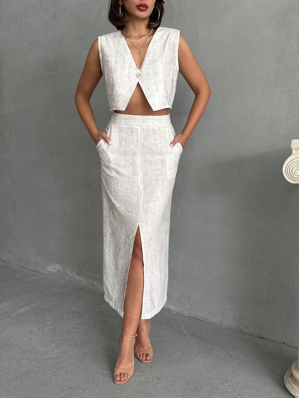 Çilek Takım Etek Yelek Beyaz (Beden: S)