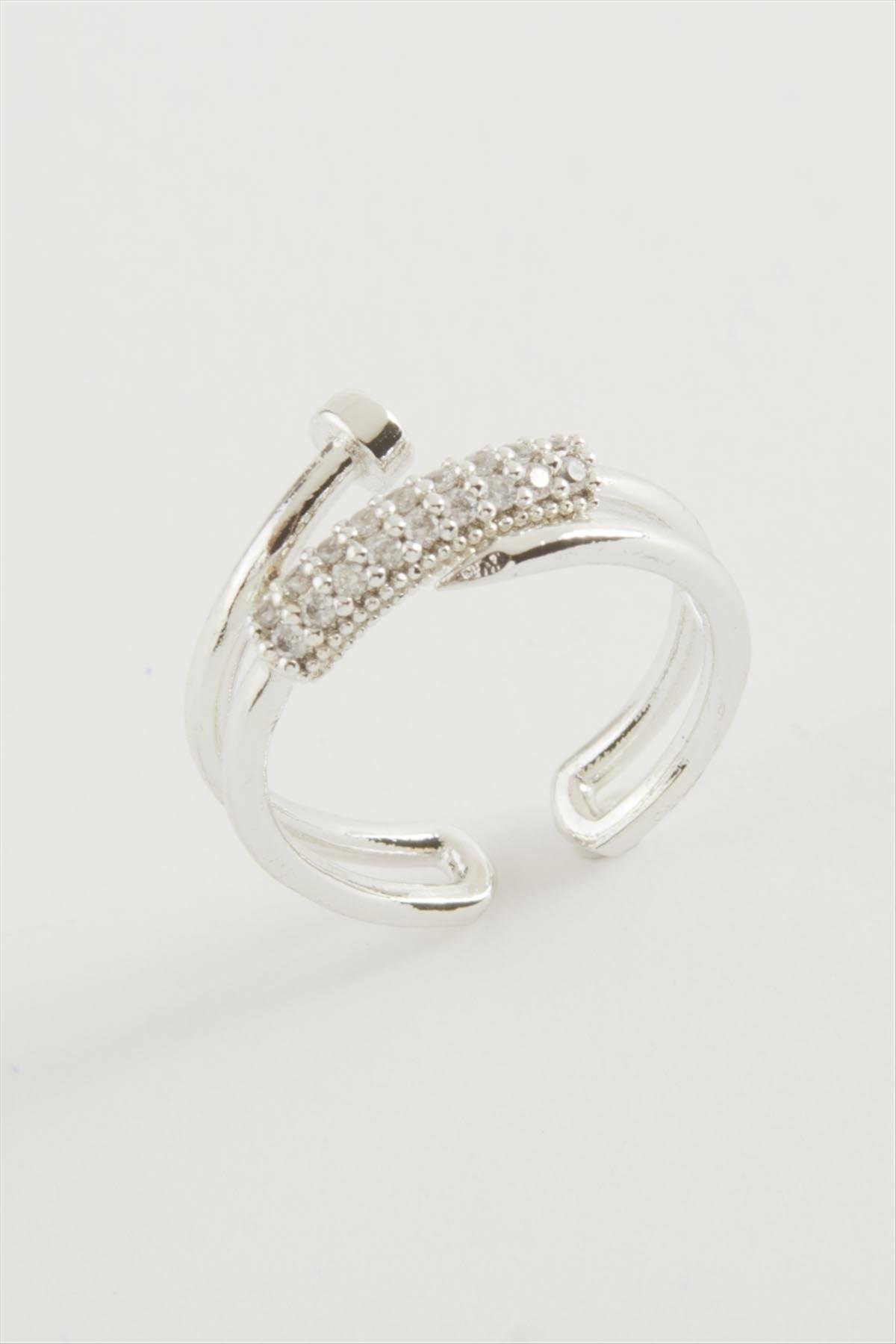 Çivi Zirkon Taşlı Yüzük-Gümüş Rengi
