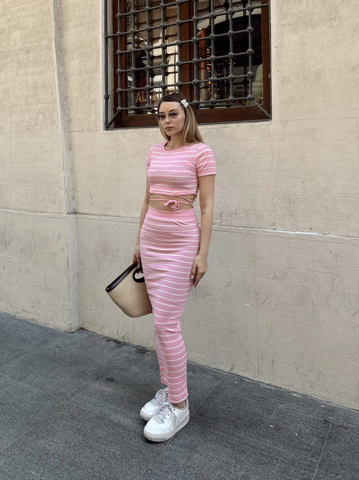 Bu sezonun trendlerine uygun şık ve şık bir seçenek olan Pembe Çizgili Etekli Takım, gardırobunuzun favori parçaları arasında yer alacak. Hem şık hem de rahat tasarımı ile öne çıkan bu takım, her türlü özel buluşma veya günlük aktivite için mükemmel bir seçimdir.