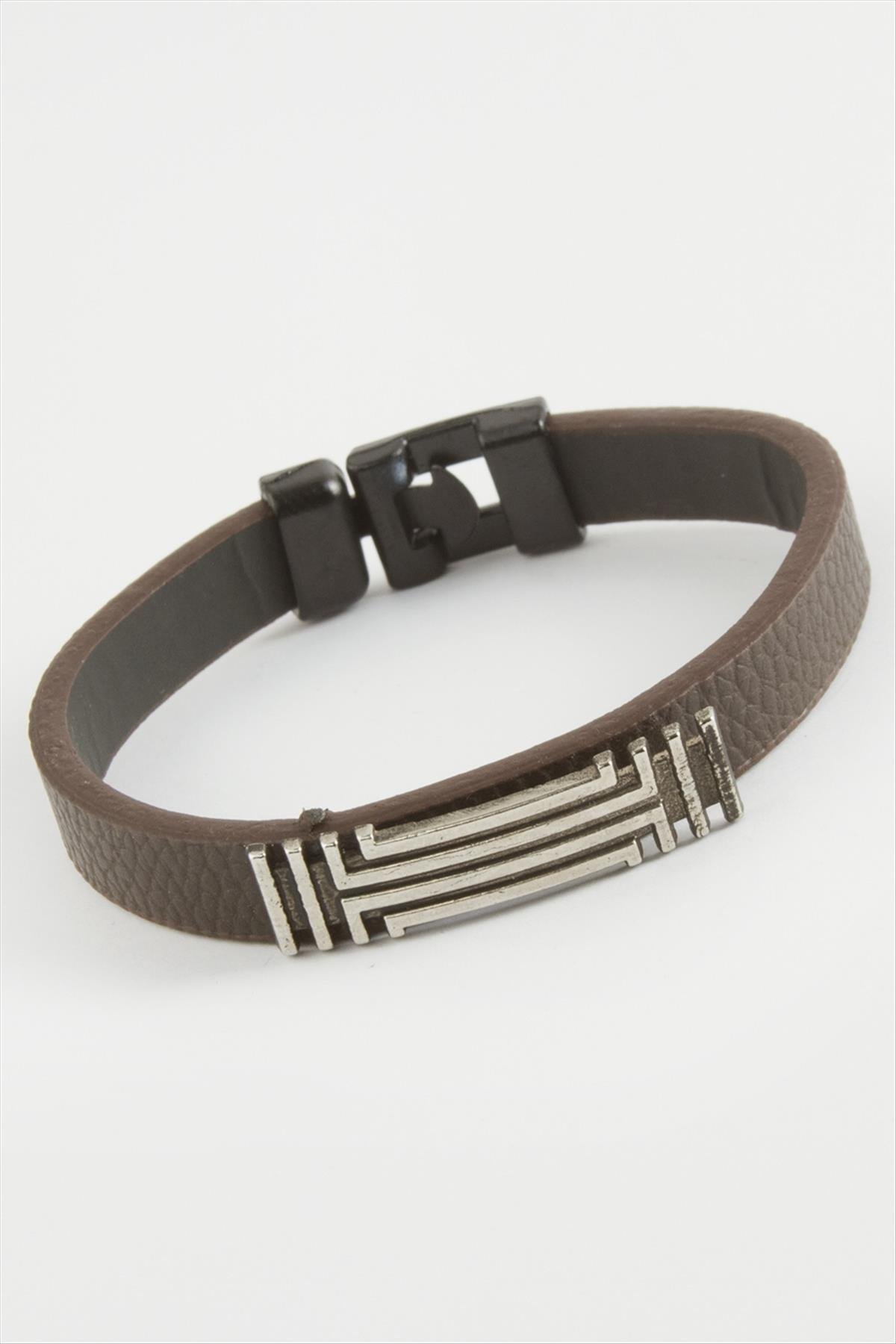 Çizgili Kaliteli Suni Deri Bileklik-Kahverengi