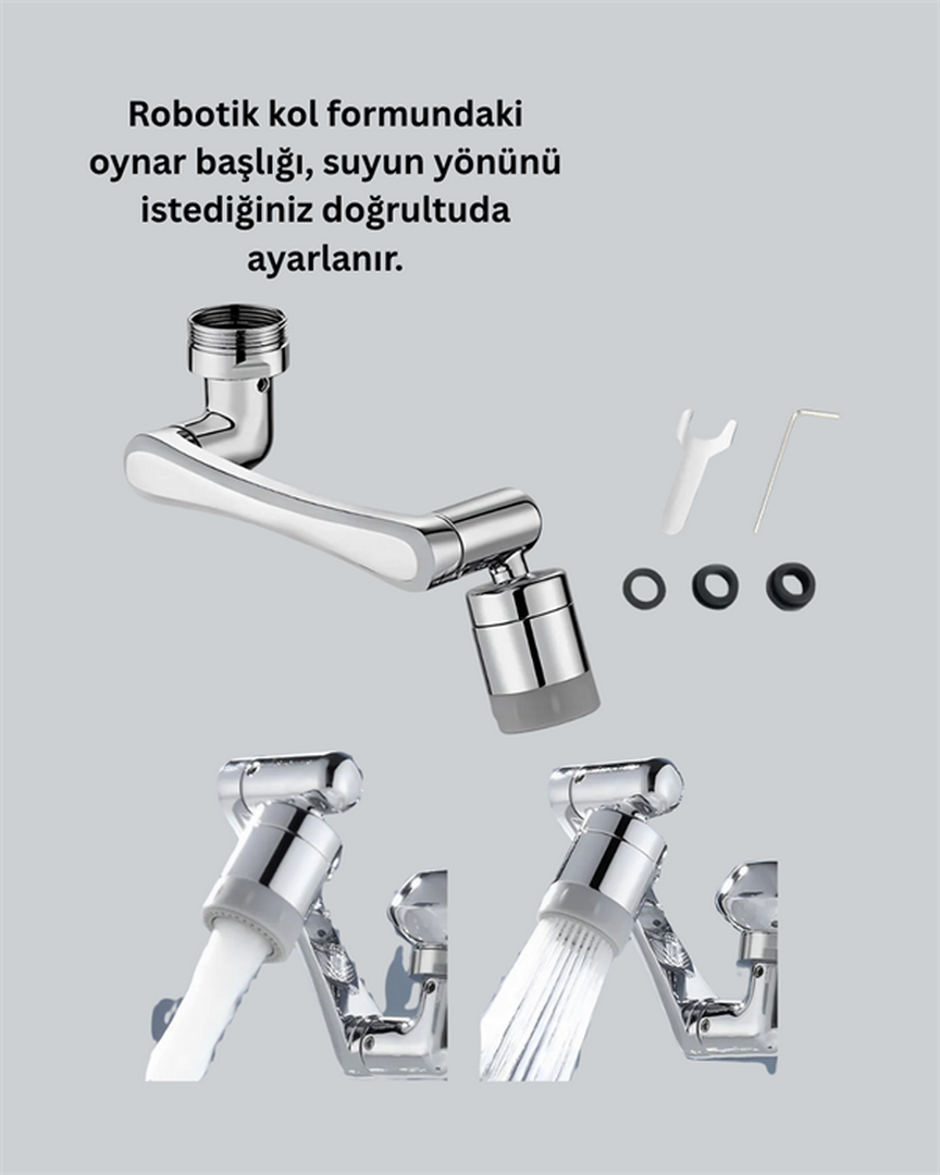1080° dönebilen çok yönlü musluk başlığı, lavabonuzun kullanım alanını genişleten yenilikçi bir çözümdür. Üç eklemli hareket sistemi sayesinde başlık tam kontrol sağlar ve suyu dilediğiniz açıya yönlendirebilirsiniz. Yukarıdan aşağıya, sağdan sola, öne ve arkaya tam esneklik sunar.