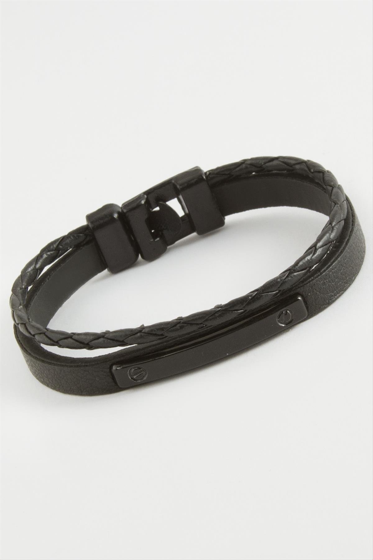 Çubuk Kaliteli Suni Deri Bileklik-Siyah