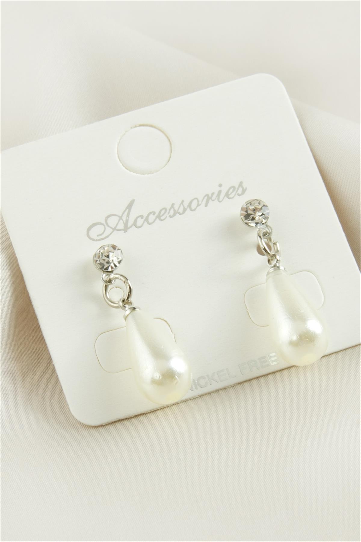 Damla İnci Taşlı Küpe-Gümüş Rengi
