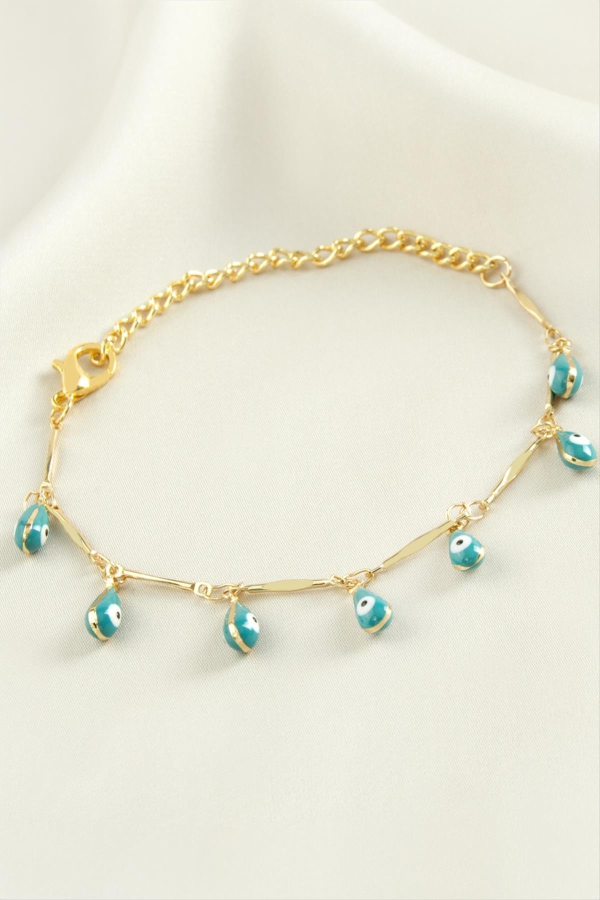 Damla Nazar Boncuk Mineli Bileklik-Petrol Yeşili