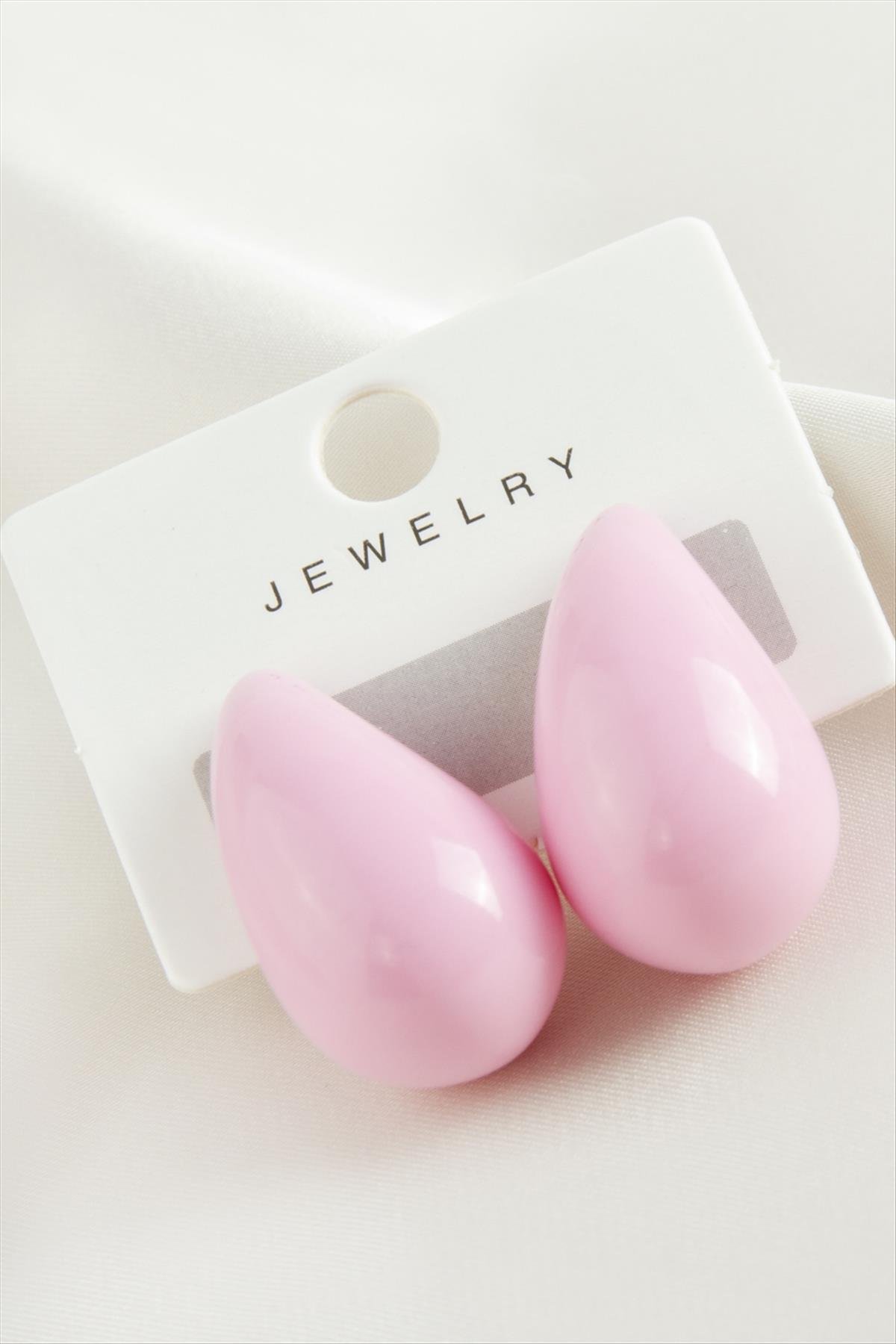 Damla Plastik Küpe-Pembe