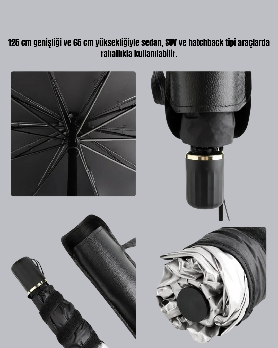 125 x 65 cm ölçüleriyle öne çıkan bu katlanabilir oto güneşlik, çok yönlü uyumluluğa sahiptir. Sedan, SUV ve hatchback araçlarla sorunsuz şekilde kullanılabilir. Aracınızın ön camını tamamen kaplayarak tam koruma sağlar.