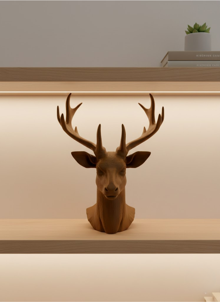 Rustik dekorasyonun vazgeçilmez unsurlarından biri olan doğal renkler, bu geyik biblo ile yaşam alanlarına taşınır. Salon, yatak odası veya ofis dekorasyonunda kullanıma uygundur. Özellikle ahşap, taş ve beton dokularla birlikte kullanıldığında güçlü bir görsel uyum sağlar.