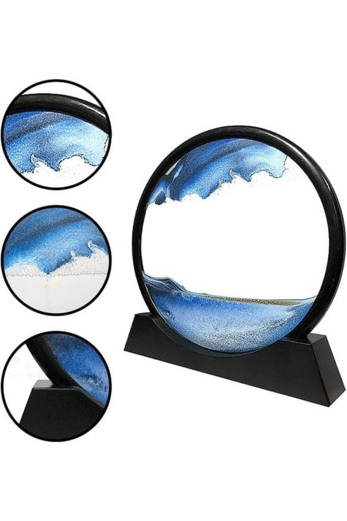 Mekanik detaylarla modern tasarımı bir araya getiren bu 3D LED ışıklı kum saati, sadece bir dekoratif obje olmanın ötesine geçerek bulunduğu ortama zarafet ve huzur katar. Mavi renk temasıyla dinginliği simgelerken, içerisinde bulunan farklı tonlardaki kumların yavaş ve dengeli hareketi izleyiciye adeta hipnotize edici bir seyir sunar. Kumun sıvı içerisinde akışını izlemek, günlük stresinize kısa bir ara vermenize ve rahatlamanıza yardımcı olur.