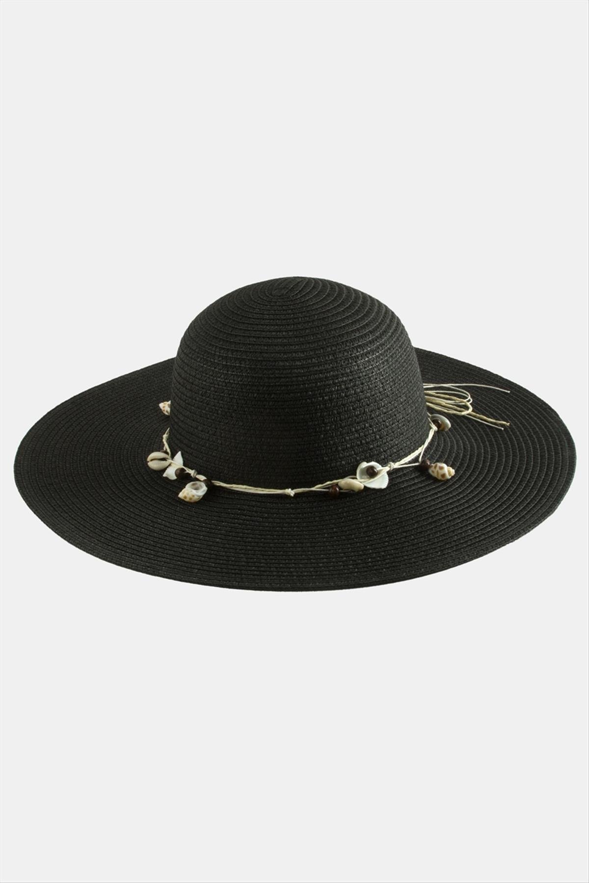 Deniz Kabuğu Hasır Plaj Şapkası-Siyah