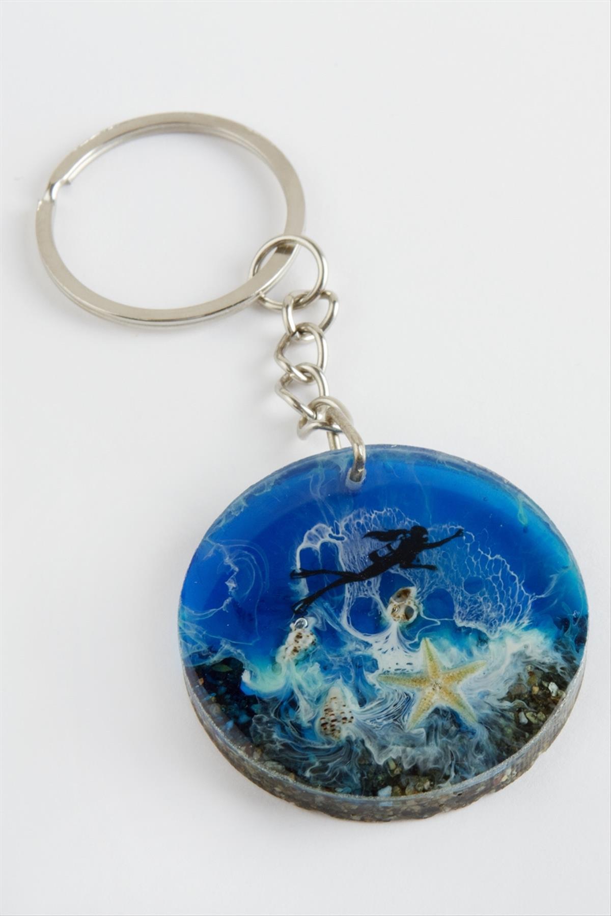 Deniz Kızı Epoksi Anahtarlık-Mavi