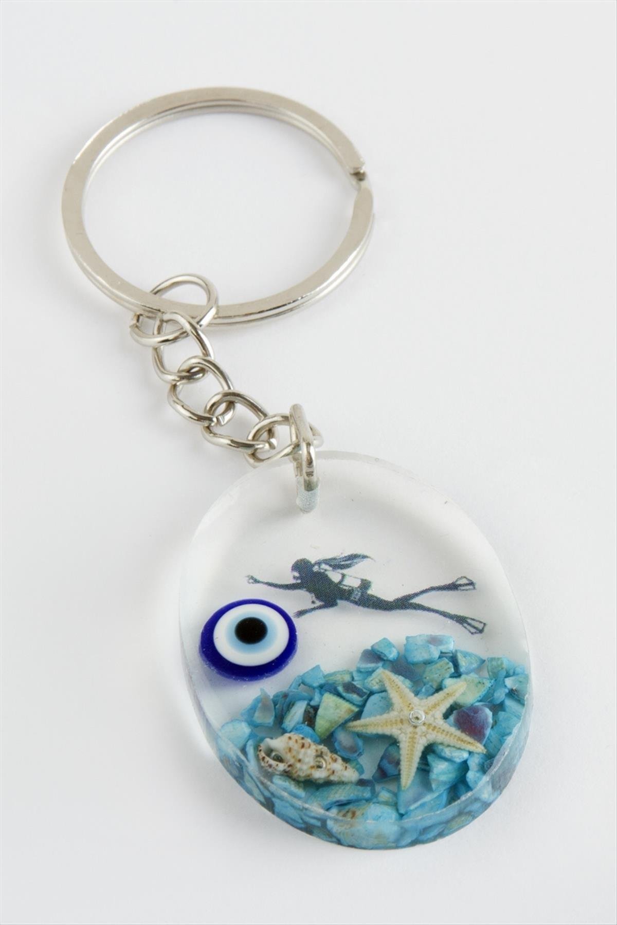 Deniz Kızı Oval Epoksi Anahtarlık-Mavi