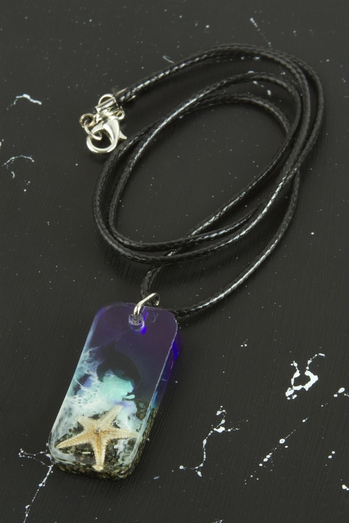Deniz Yıldızı Dikdörtgen Epoksi Kolye-Mor