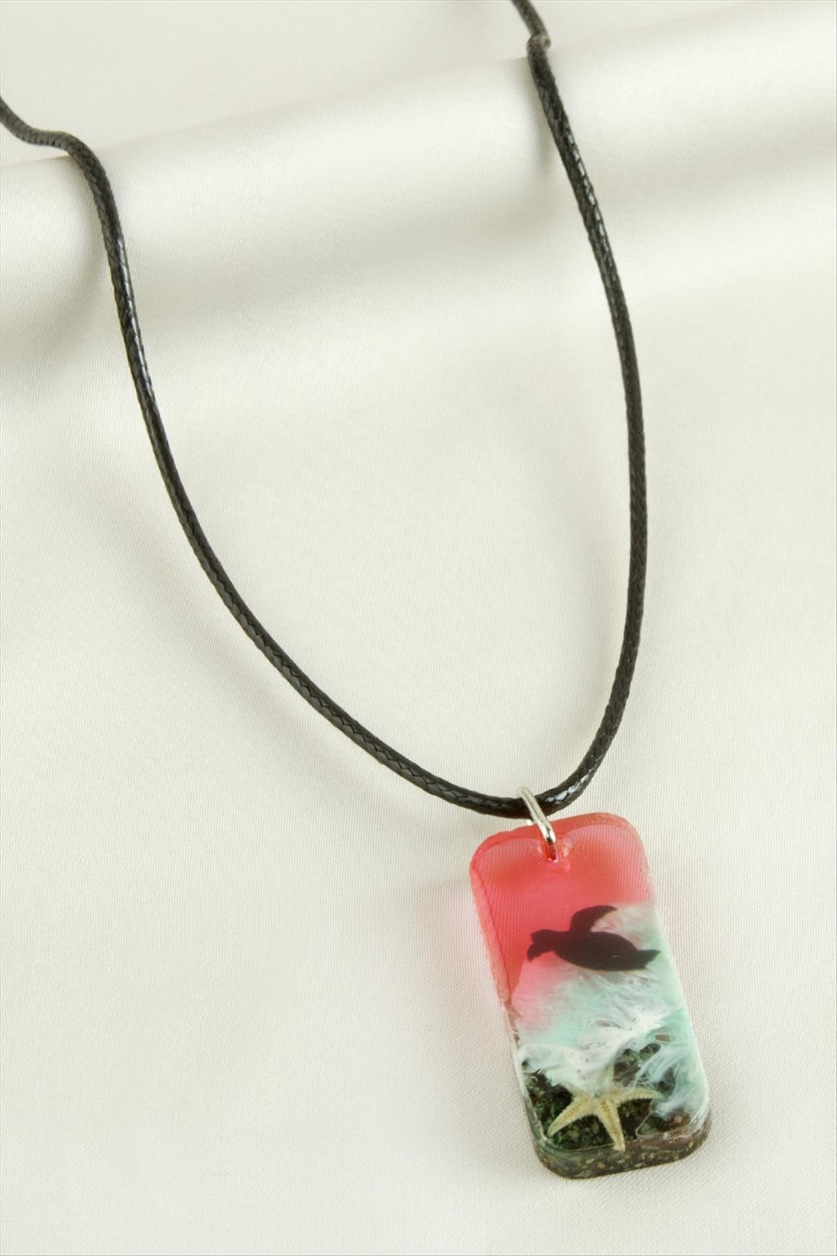 Deniz Yıldızı Dikdörtgen Epoksi Kolye-Pembe
