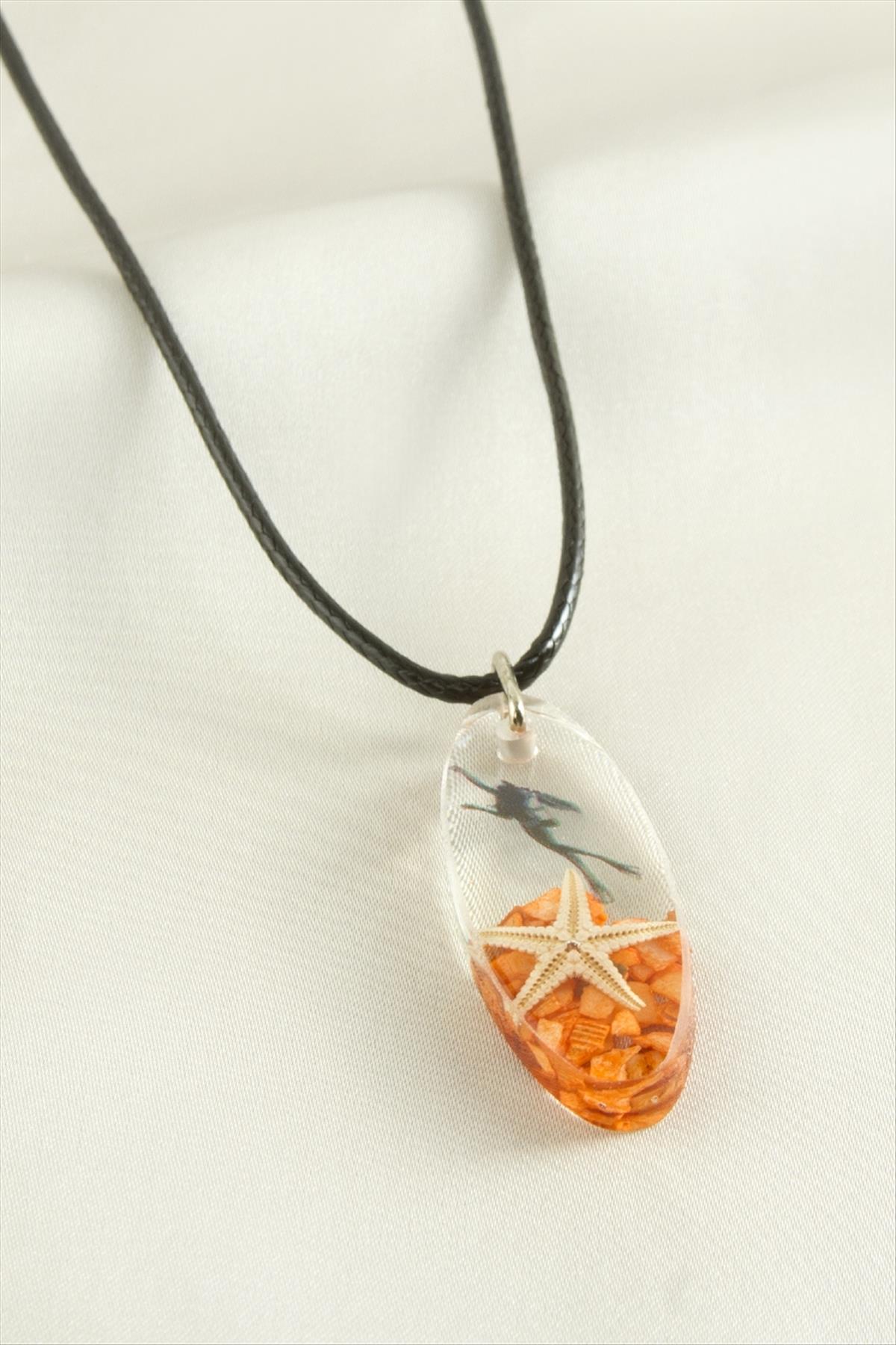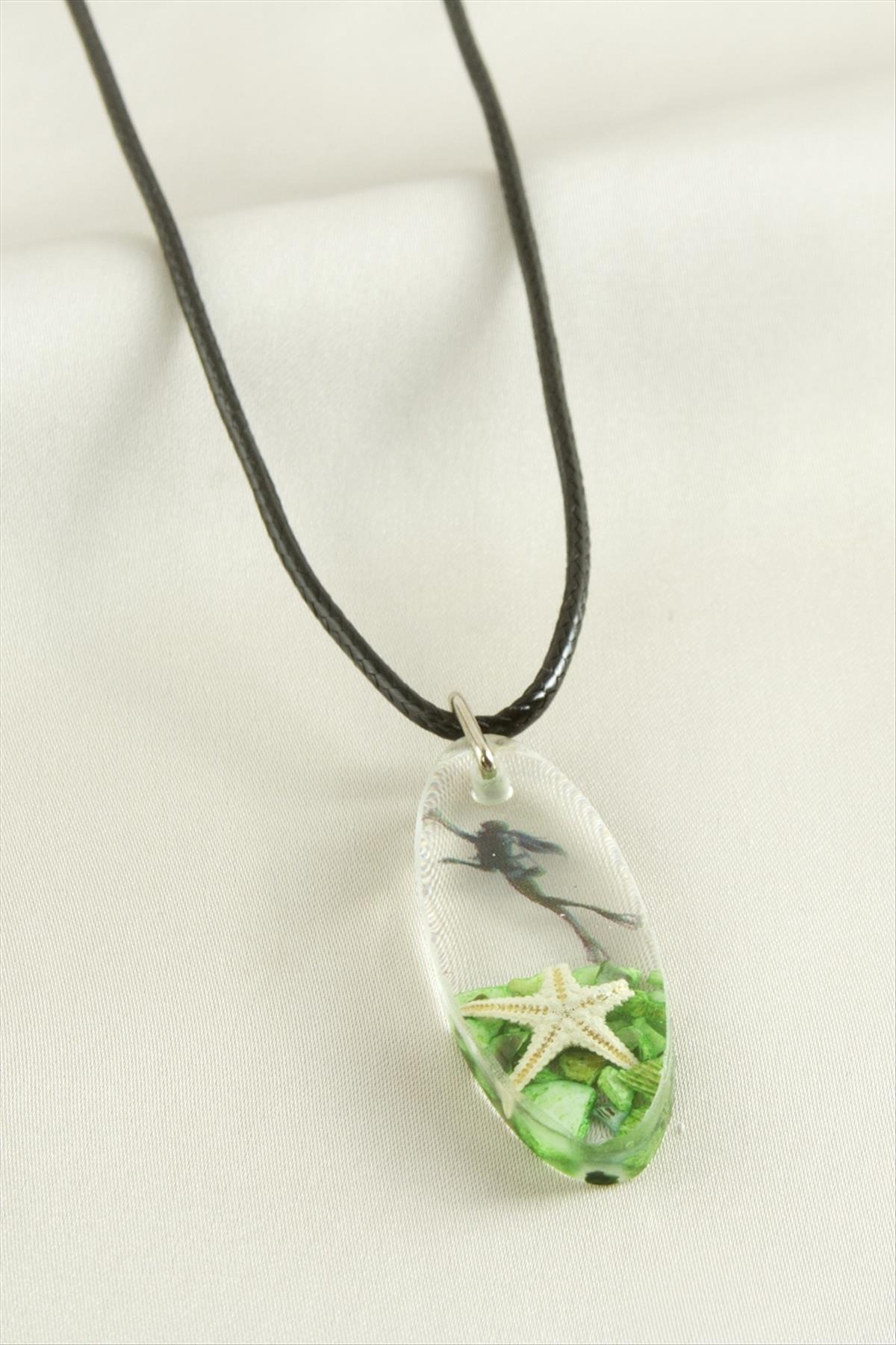 Deniz Yıldızı Elips Epoksi Kolye-Yeşil