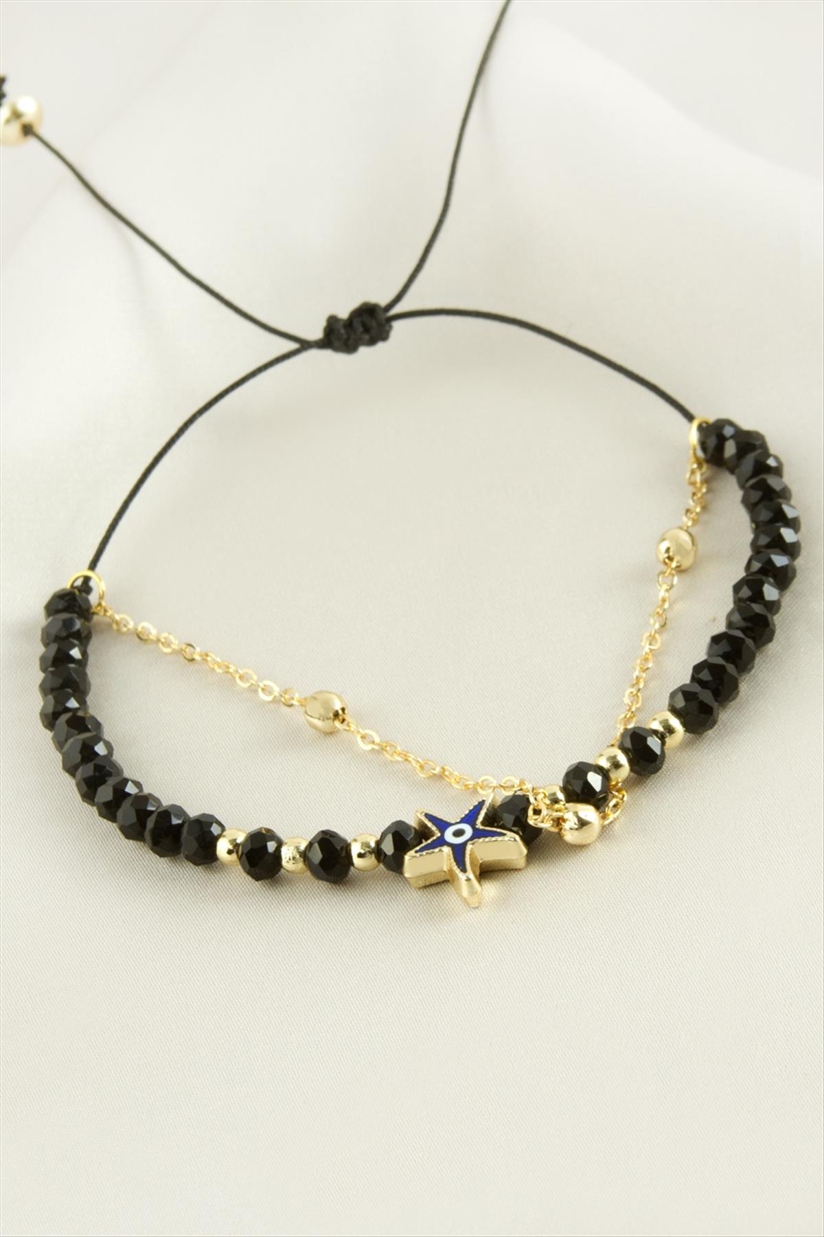 Deniz Yıldızı Kristal Zincirli Bileklik-Siyah